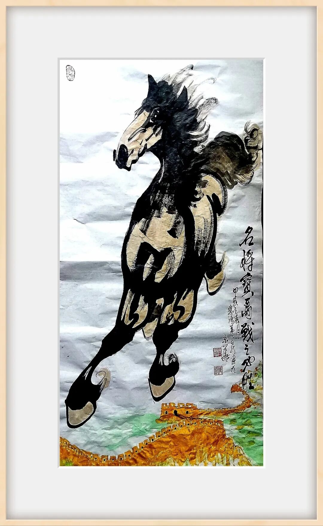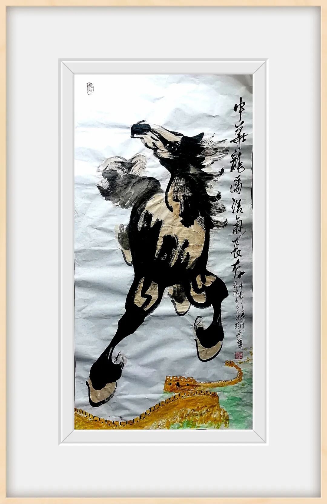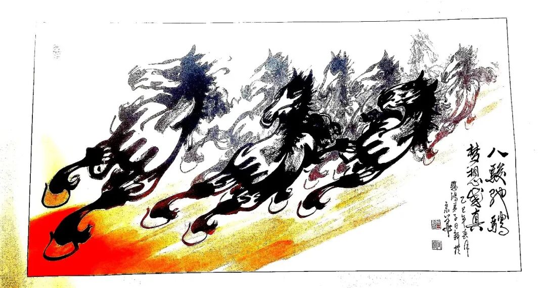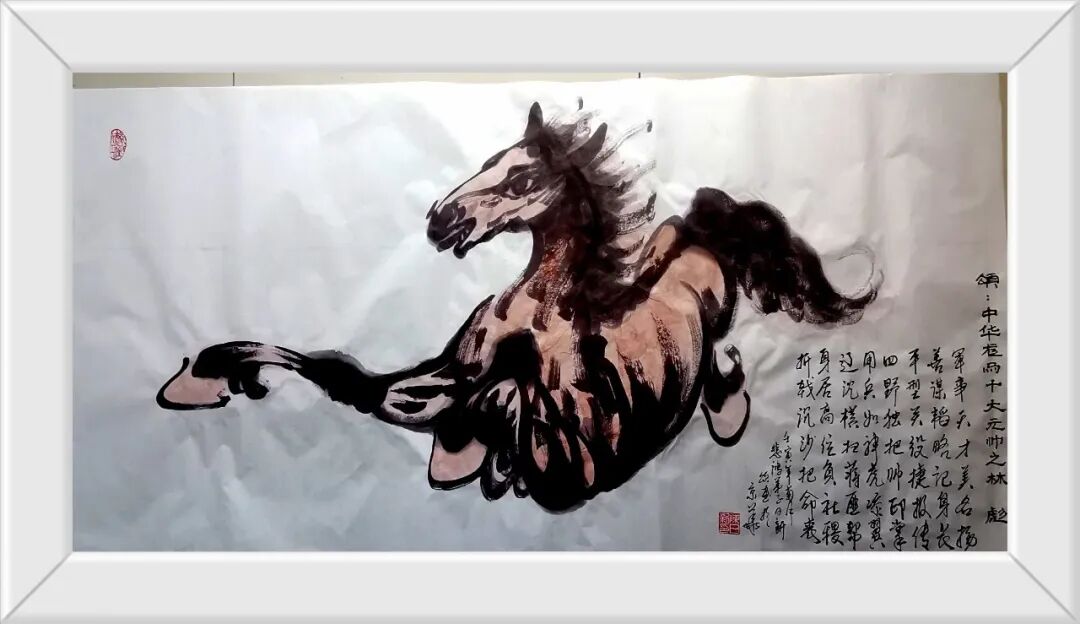 艺术的价值,在于笔墨当随时代。陈日新先生的奔马,不仅有传统绘画的古雅气韵,更饱含当代人的精神共鸣。他曾为广州百名将军创作群马图,画中骏马蹄下生风、气势磅礴,既是对军人刚毅品格的礼赞,也是对民族昂扬精神的写照;他的作品多次亮相海内外展会,从北京到重庆,从内地到香港,金银大奖的荣誉背后,是不同文化背景下观众对“奔马精神”的共同认同。中央电视台“中国历代画马”节目专题介绍其艺术,《人民日报》《香港大公报》等数十家媒体争相刊载,北京、广州等地的个人画展更是引发观者热潮——这些认可,印证了他的艺术早已超越画室边界,成为连接传统与现代、艺术家与大众的精神纽带。