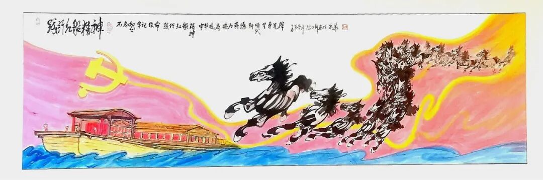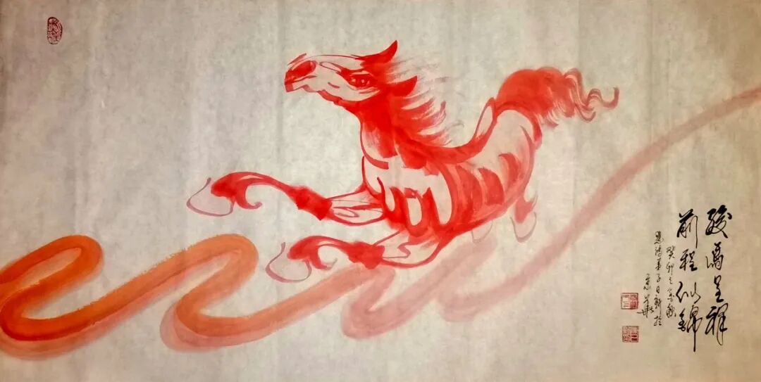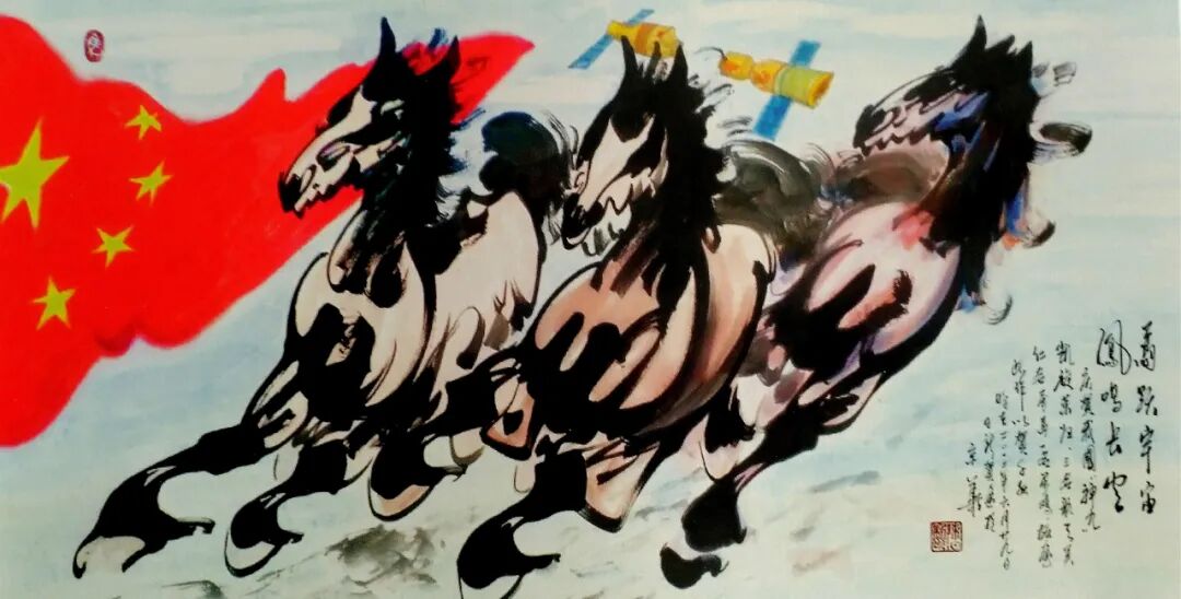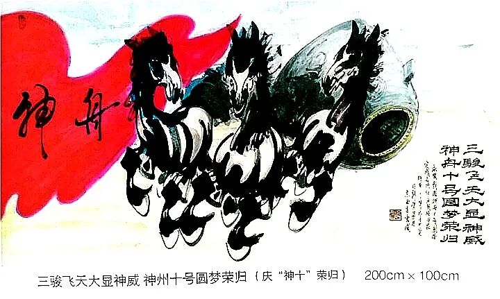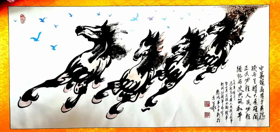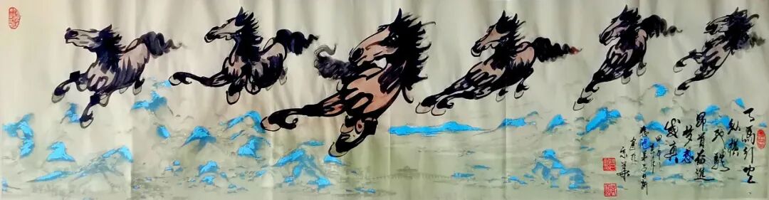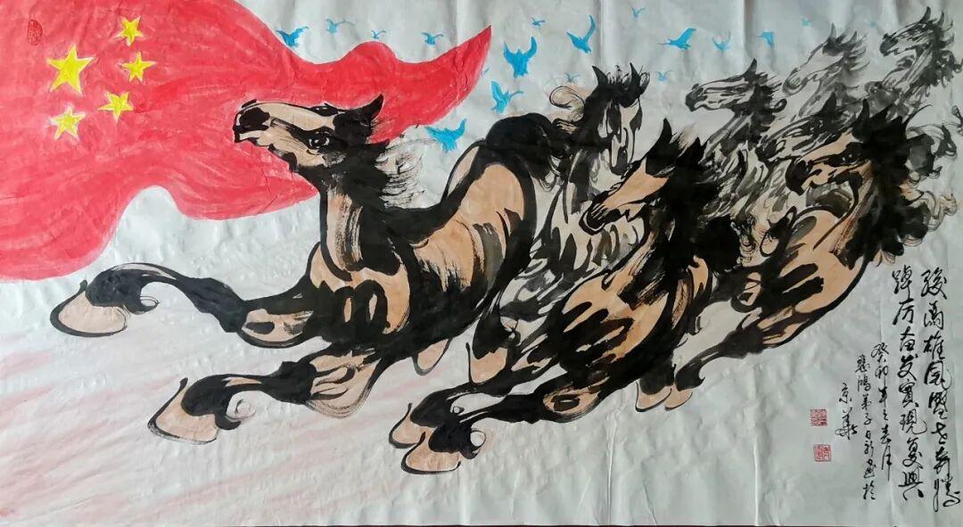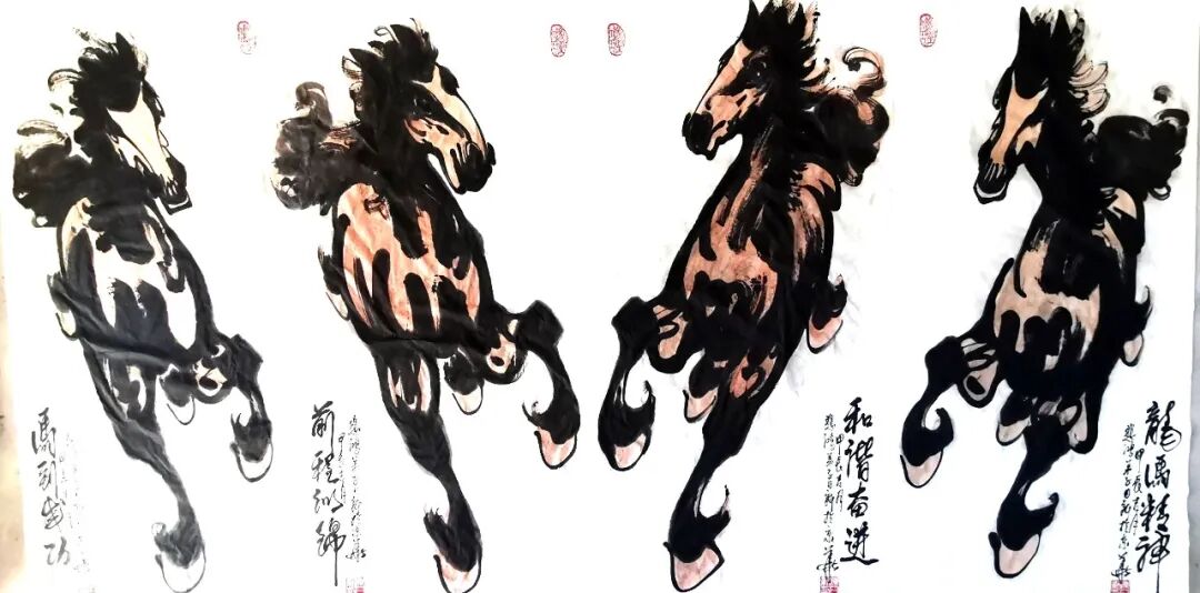 艺术的价值,在于笔墨当随时代。陈日新先生的奔马,不仅有传统绘画的古雅气韵,更饱含当代人的精神共鸣。他曾为广州百名将军创作群马图,画中骏马蹄下生风、气势磅礴,既是对军人刚毅品格的礼赞,也是对民族昂扬精神的写照;他的作品多次亮相海内外展会,从北京到重庆,从内地到香港,金银大奖的荣誉背后,是不同文化背景下观众对“奔马精神”的共同认同。中央电视台“中国历代画马”节目专题介绍其艺术,《人民日报》《香港大公报》等数十家媒体争相刊载,北京、广州等地的个人画展更是引发观者热潮——这些认可,印证了他的艺术早已超越画室边界,成为连接传统与现代、艺术家与大众的精神纽带。