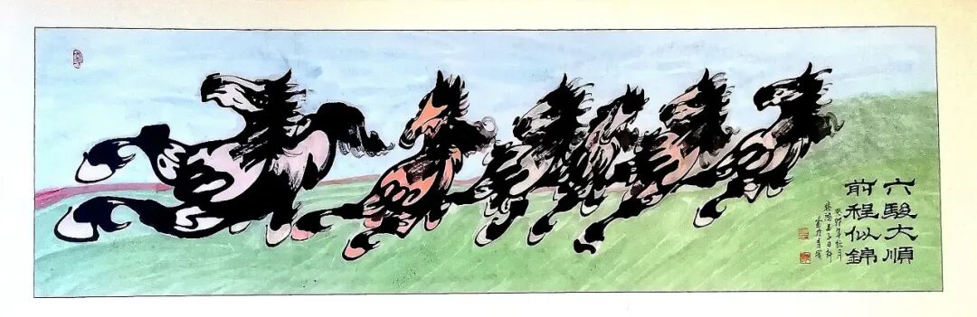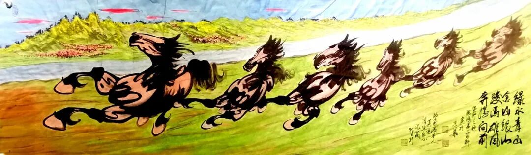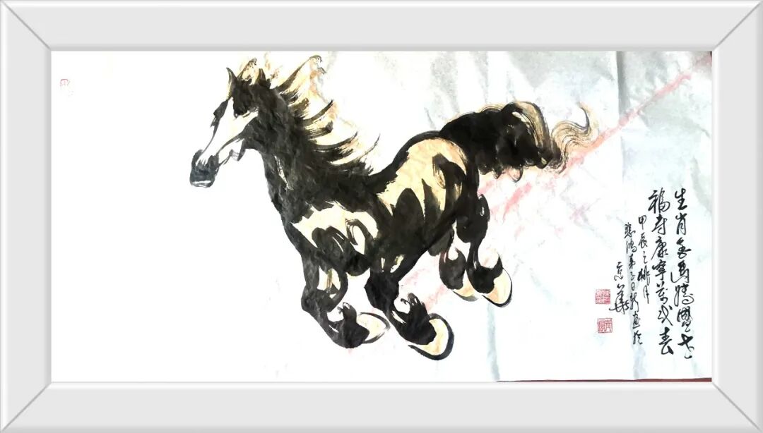 “有奔腾的气势”,贾庆林主席对其作品的评价,精准点出了陈日新画马的灵魂所在。这种气势,源于他对生活的体察:为了捕捉马的真实动态,他曾多次深入马场,观察骏马奔跑时肌肉的收缩、鬃尾的摆动;这种气势,更源于他对时代的感知:在他看来,奔马是进取精神的象征,是民族复兴路上的生动隐喻。正因如此,他的作品不仅被多家美术馆、画廊珍藏,更走进寻常百姓家,收藏者那句“悲鸿画马后继有人”的赞誉,既是对他艺术传承的肯定,更是对其时代价值的致敬。