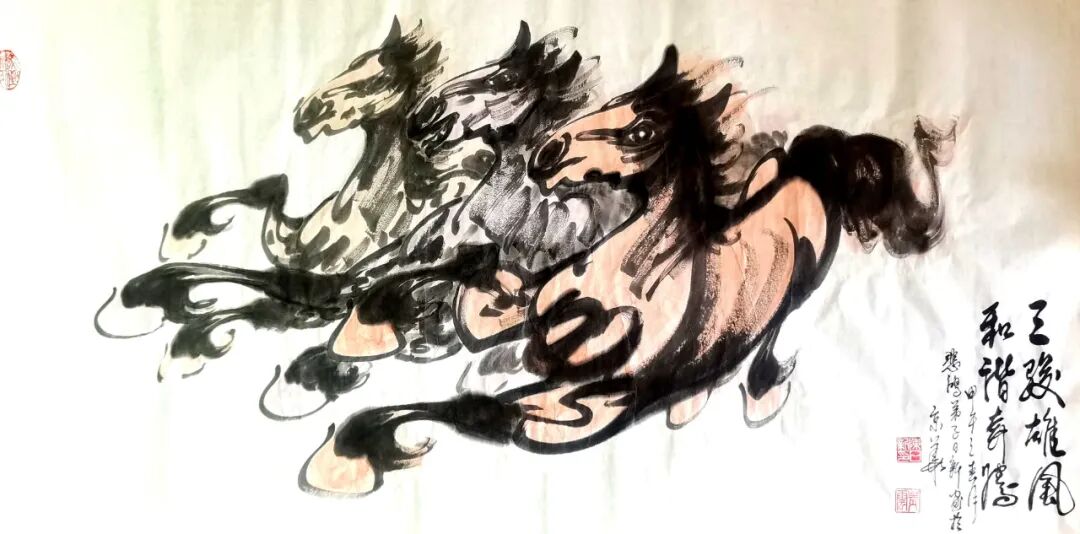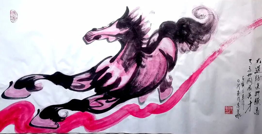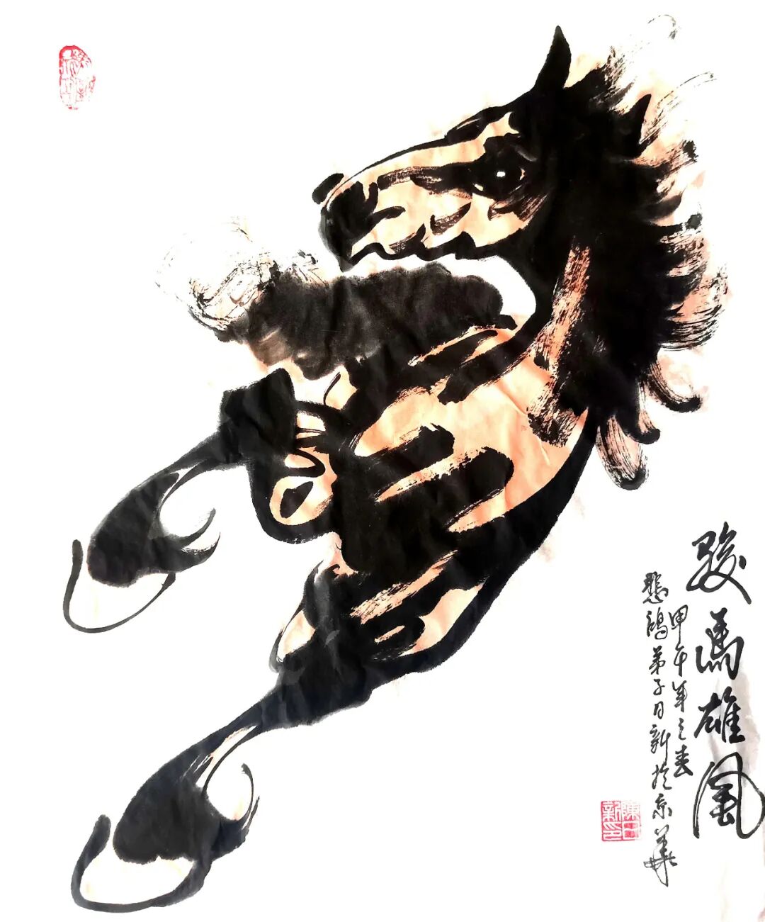 陈日新先生画的马动感强!潇洒自如!有奔腾的气势!能笔墨当随时代!