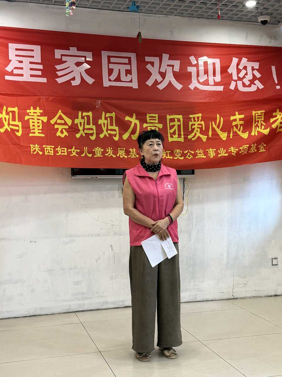 随后,陕西妇女儿童发展基金会虹霓公益事业专项基金妈妈力量团副团长张治莲上台分享。她深情讲述了“妈妈力量团”的公益初心——用母爱般的温暖守护每一个需要关怀的孩子,尤其关注特殊儿童的成长。“公益不是一个人的事,而是一群人的坚持。”她呼吁更多人加入助残公益的行列,用点滴善意汇聚成照亮孩子们未来的光,现场更以一首充满希望的诗歌,传递对孩子们最真挚的祝福。