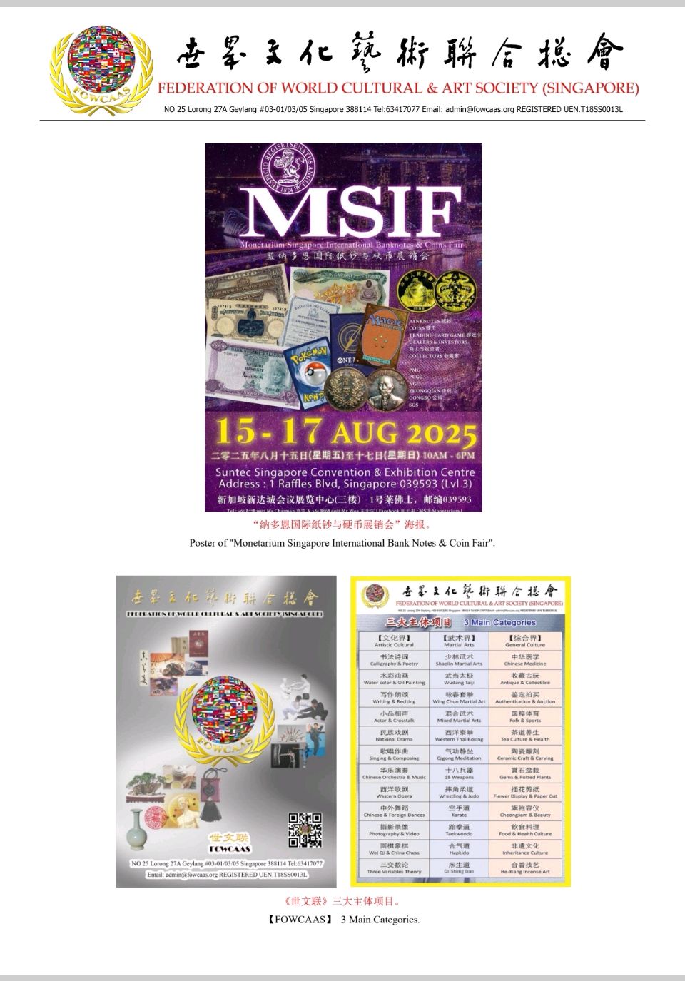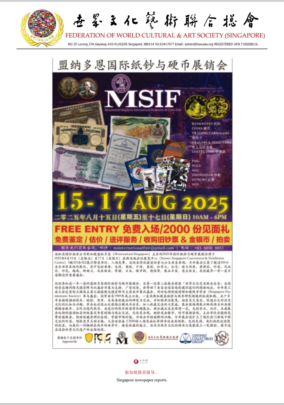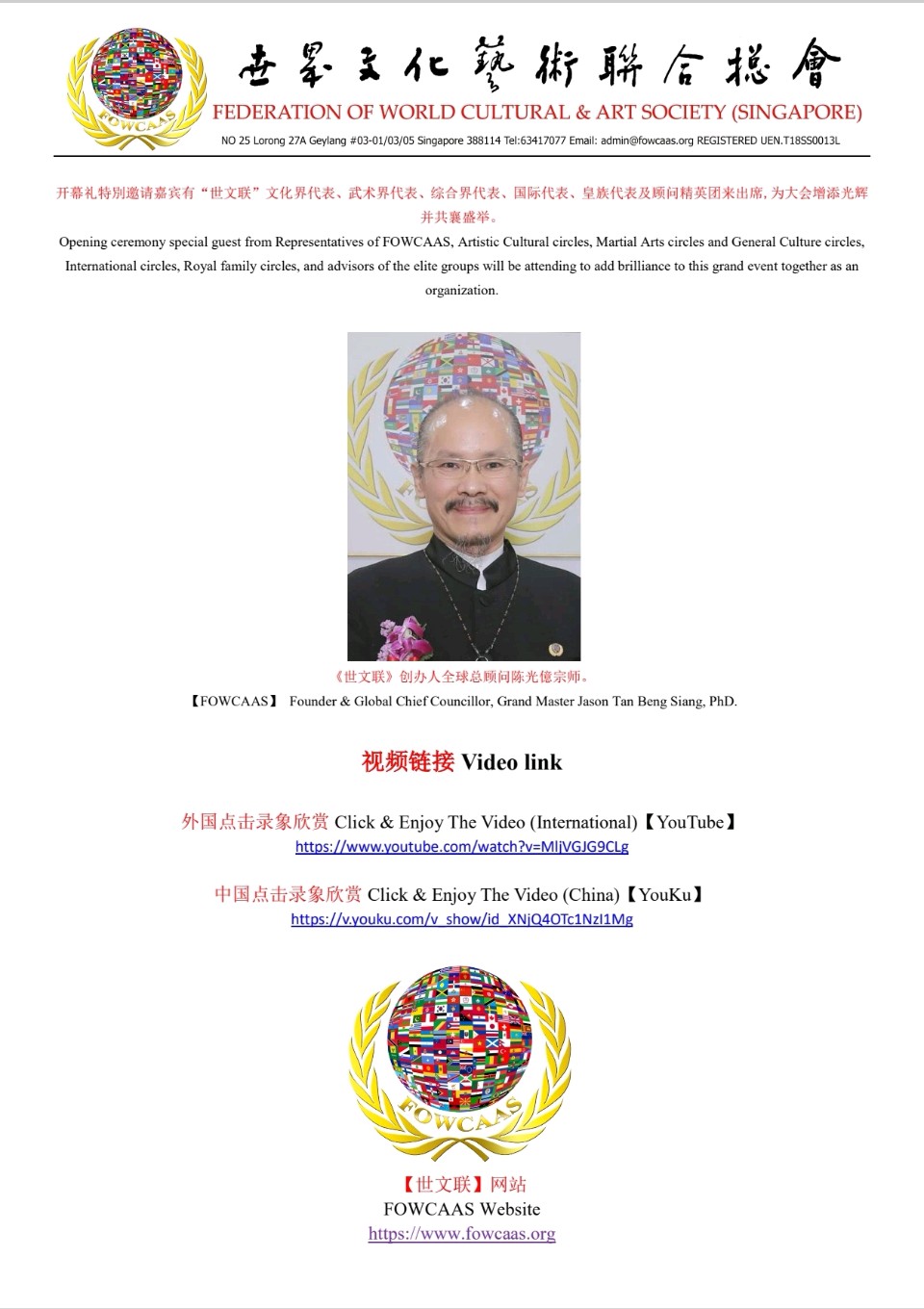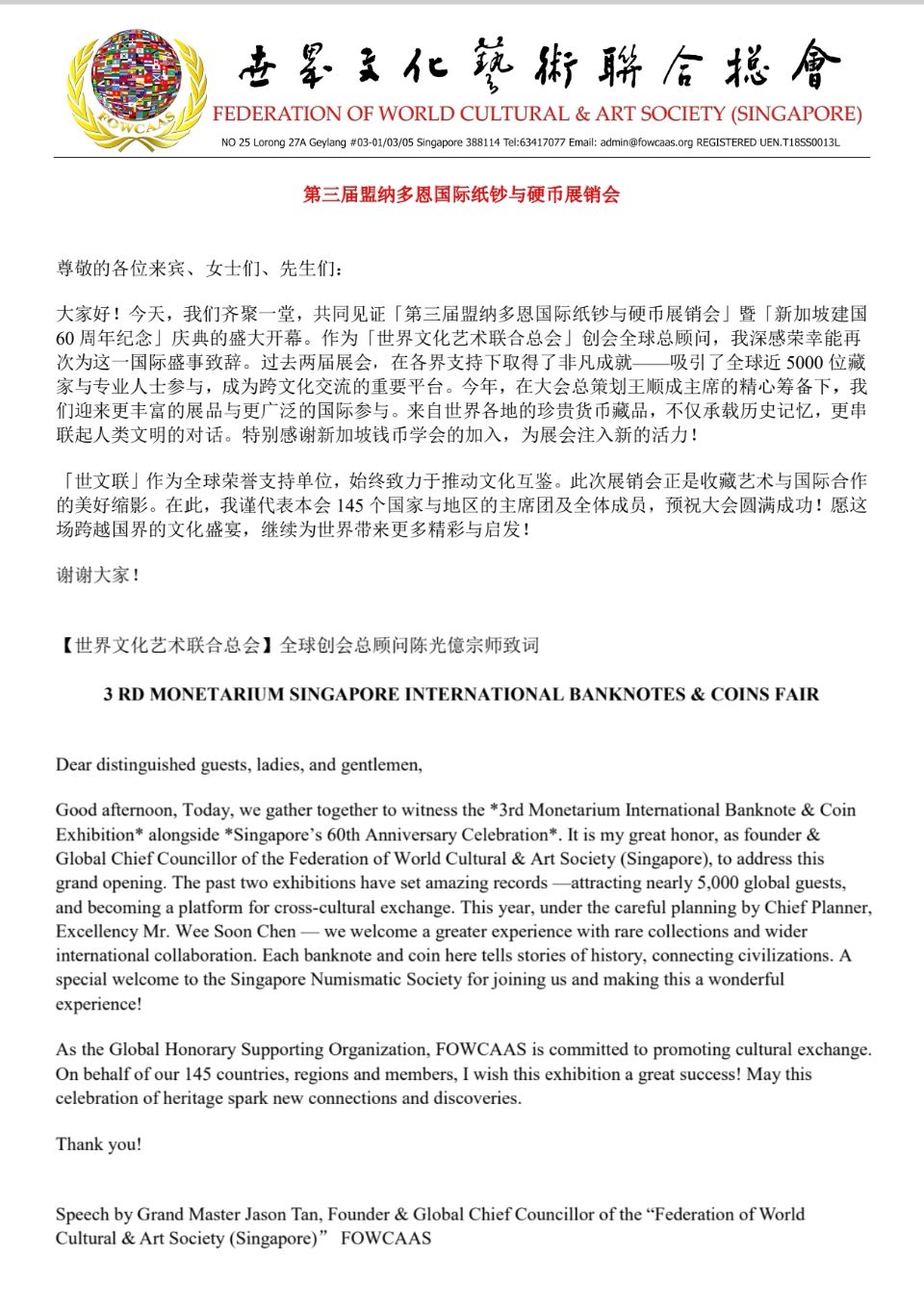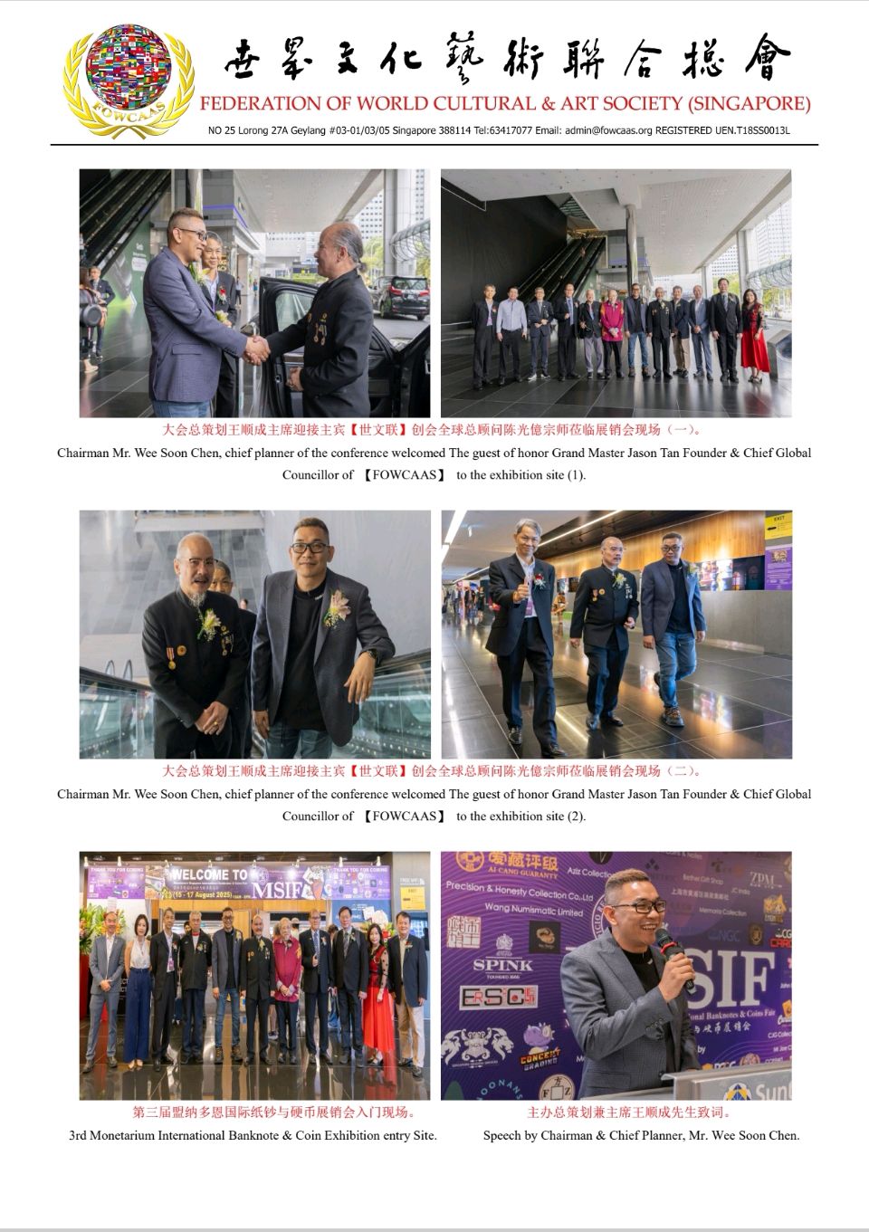 【世文联】创会全球总顾问陈光億宗师为第三届“盟纳多恩国际纸钞与硬币展销会”暨“庆祝新加坡建国六十周年纪念”开幕典礼圆滿成功