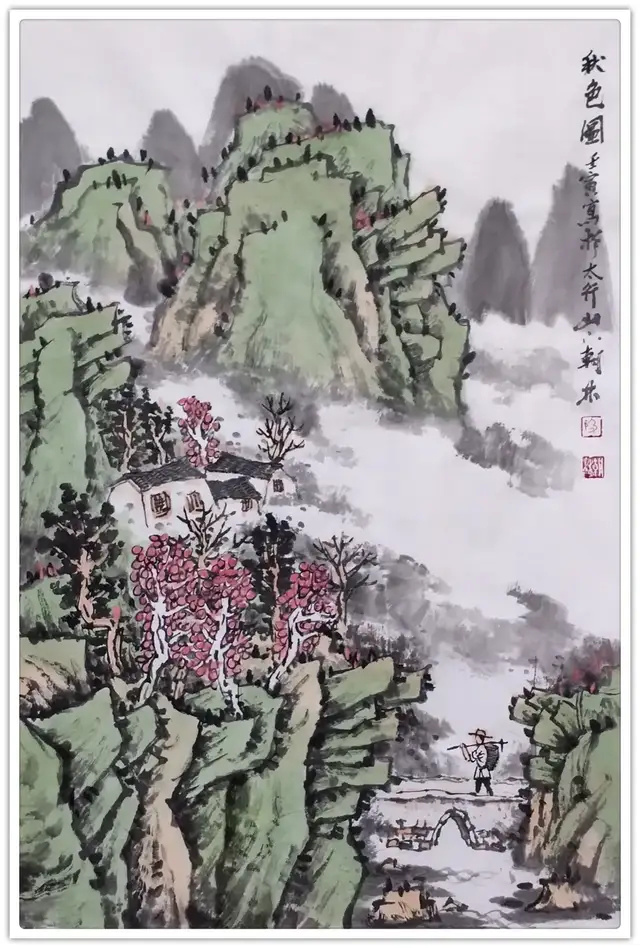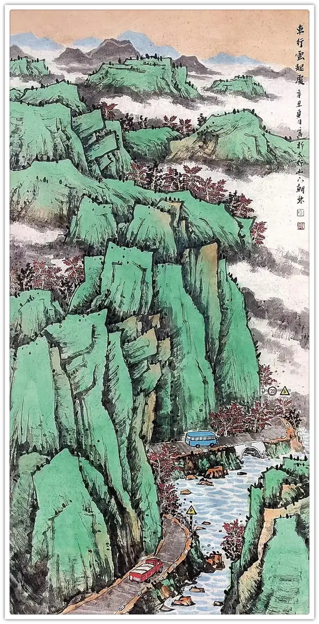 部分作品(如《色映秋山》组画)将青绿色域分解为几何块面,暗合塞尚的结构意识,但通过书法性笔线保持与传统的气脉连接,形成"写意重彩"的新范式。