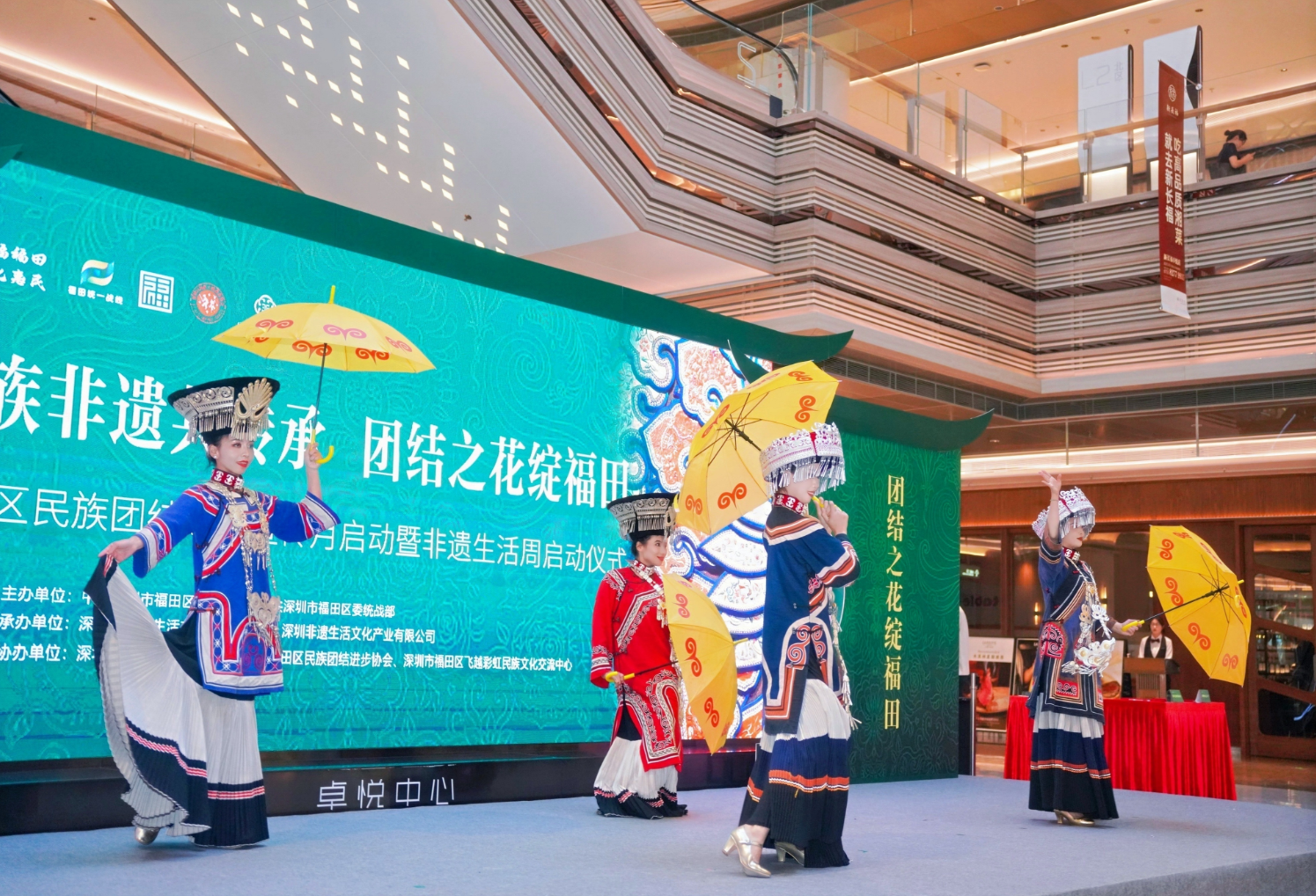9月7日,“民族非遗共传承·团结之花绽福田”2025年福田区民族团结进步宣传月启动仪式暨非遗生活周在福田街道One Avenue卓悦中心举行。深圳市委统战部副部长覃敬腾,福田区委常委、统战部部长王立萍出席活动。