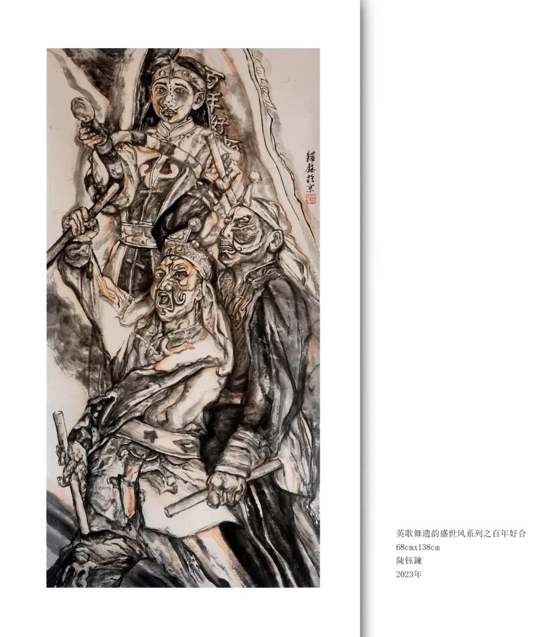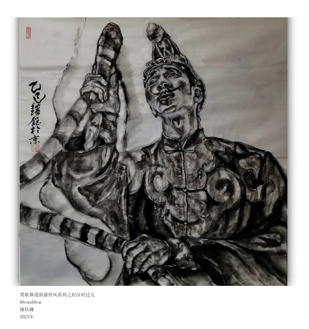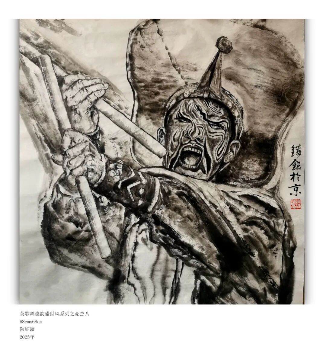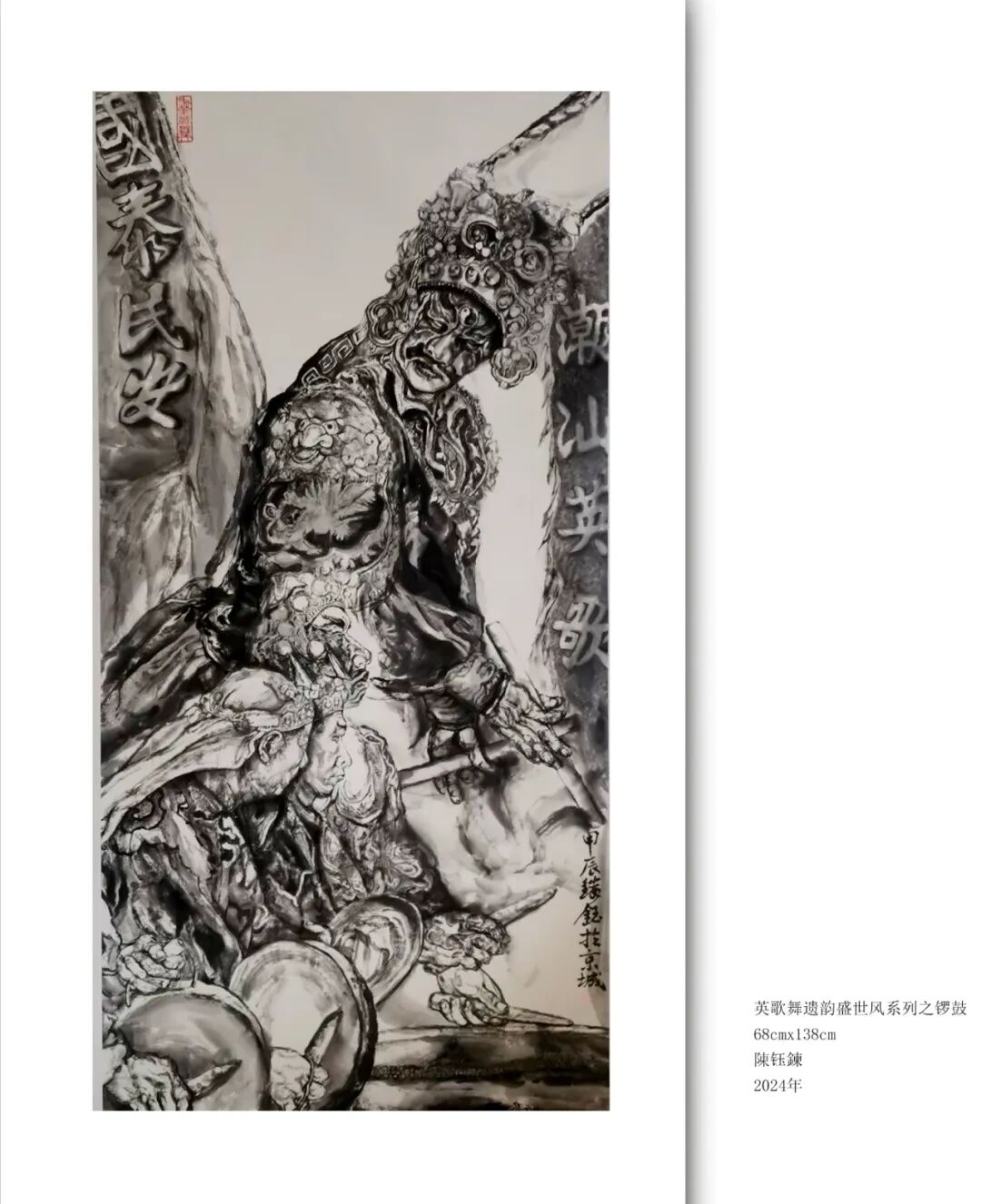 钰鍊言语不多,却对艺术有着执着近乎痴狂的热爱与追求。入行以来,经年笔耕不辍,画了大量作品。近年一组以家乡潮汕地区英歌舞为题的作品,倾注了他大量的心血,成就了他热爱生活、表现生活的艺术理想,以艺术的方式实践着他饮水思源、久客思归的游子情怀。此系列作品以现实主义创作手法,表现了英歌舞热烈刚劲的精神气息,其严谨的造型方式,厚朴的笔墨特色,加之简约而响亮的色彩运用。较好地扣合了英歌舞壮美的审美气息。