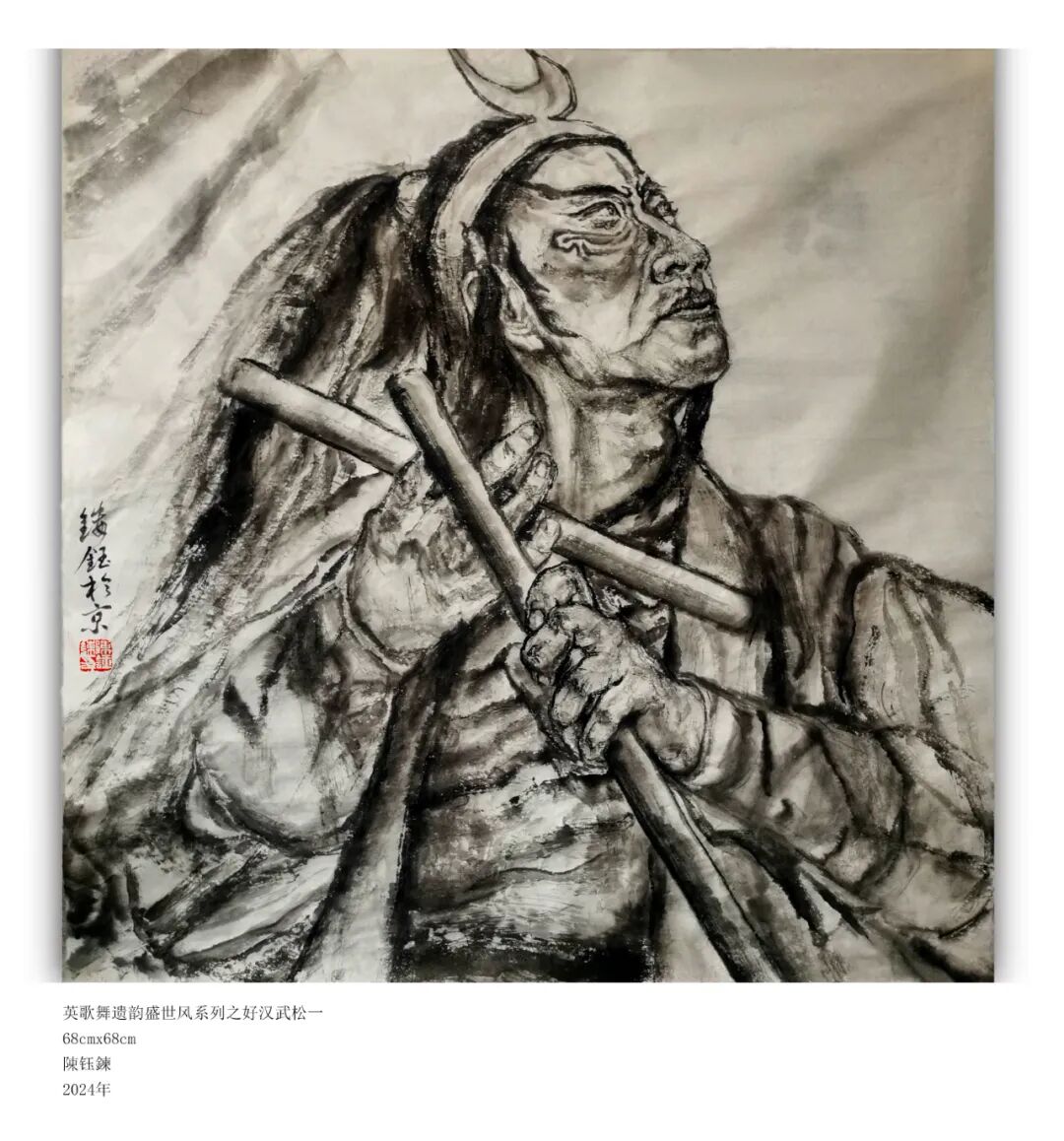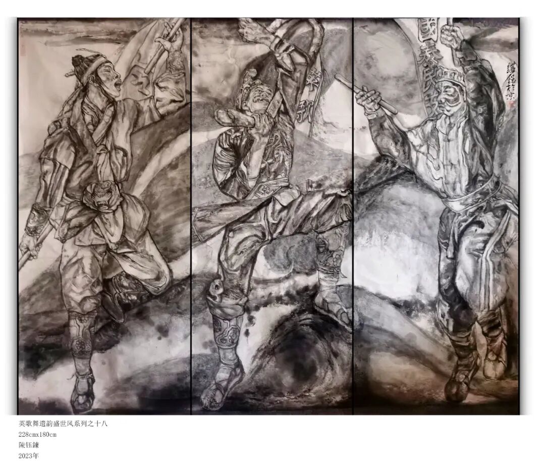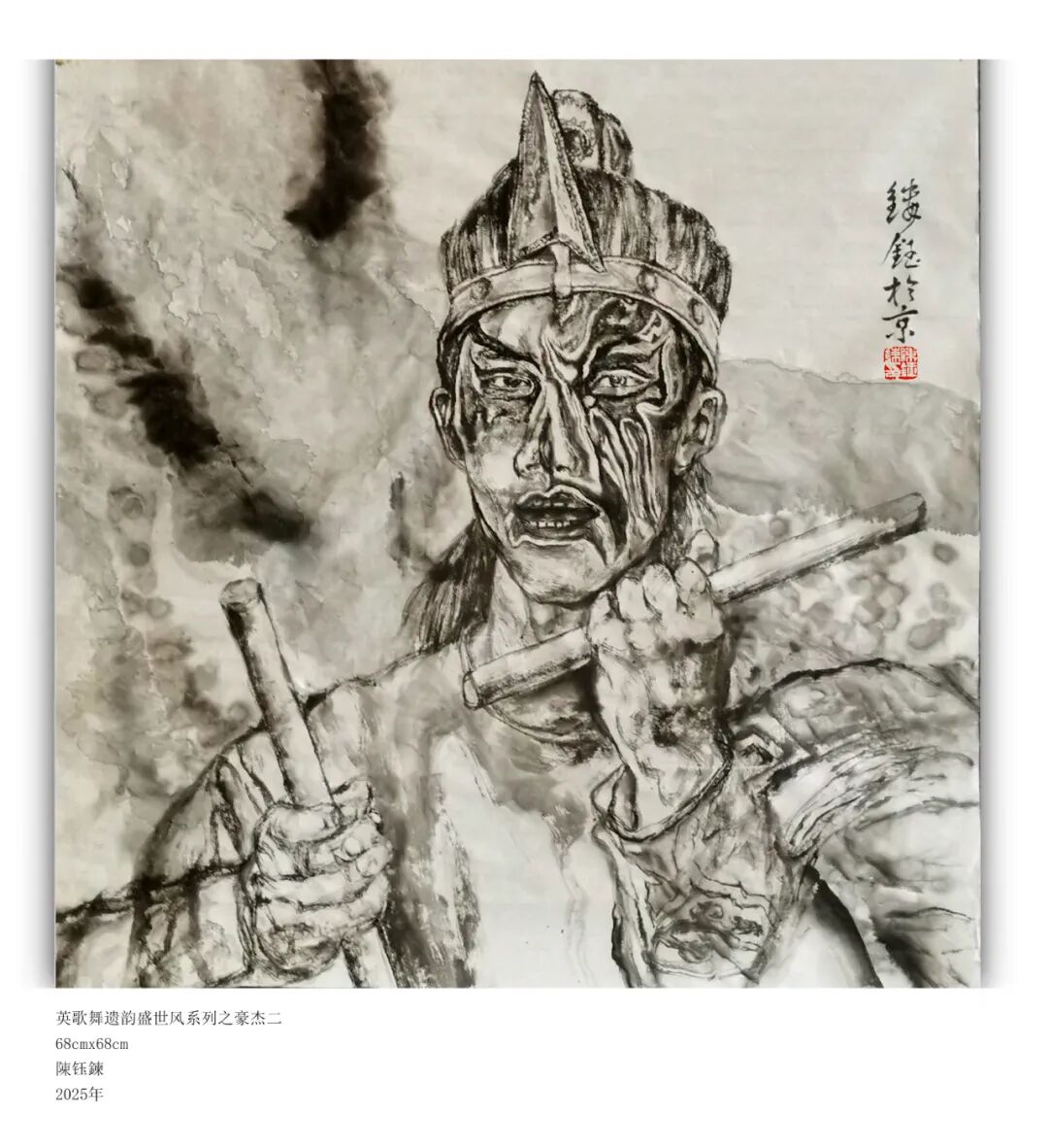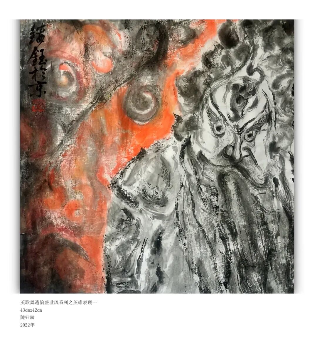 钰鍊言语不多,却对艺术有着执着近乎痴狂的热爱与追求。入行以来,经年笔耕不辍,画了大量作品。近年一组以家乡潮汕地区英歌舞为题的作品,倾注了他大量的心血,成就了他热爱生活、表现生活的艺术理想,以艺术的方式实践着他饮水思源、久客思归的游子情怀。此系列作品以现实主义创作手法,表现了英歌舞热烈刚劲的精神气息,其严谨的造型方式,厚朴的笔墨特色,加之简约而响亮的色彩运用。较好地扣合了英歌舞壮美的审美气息。