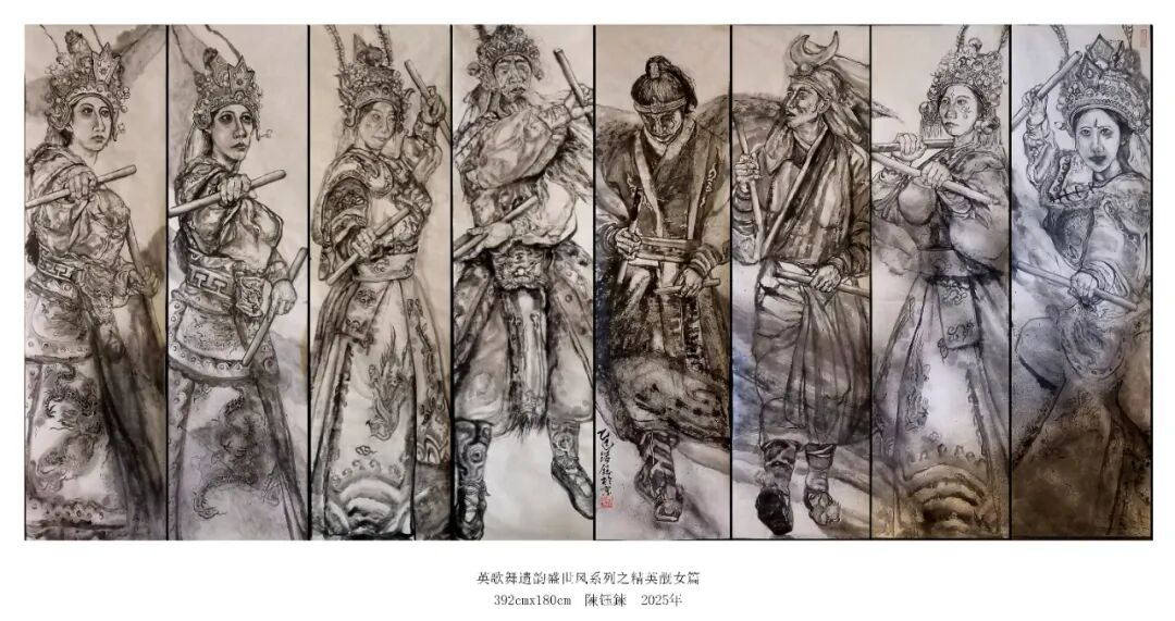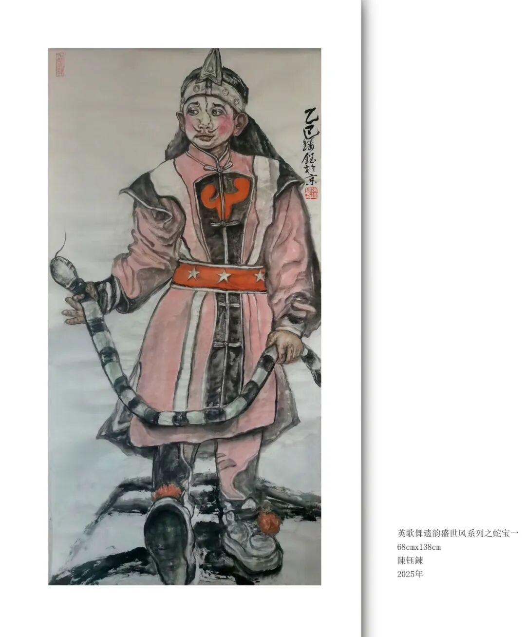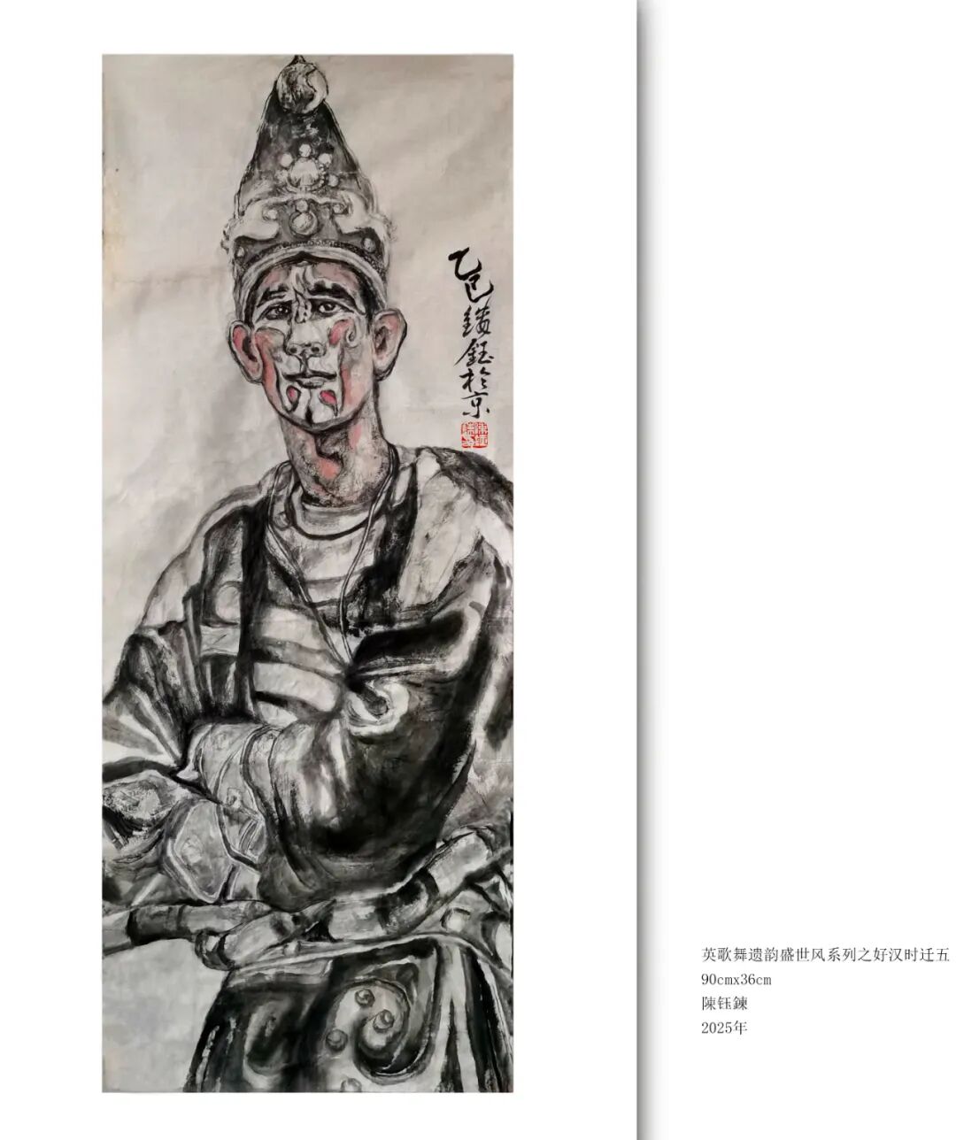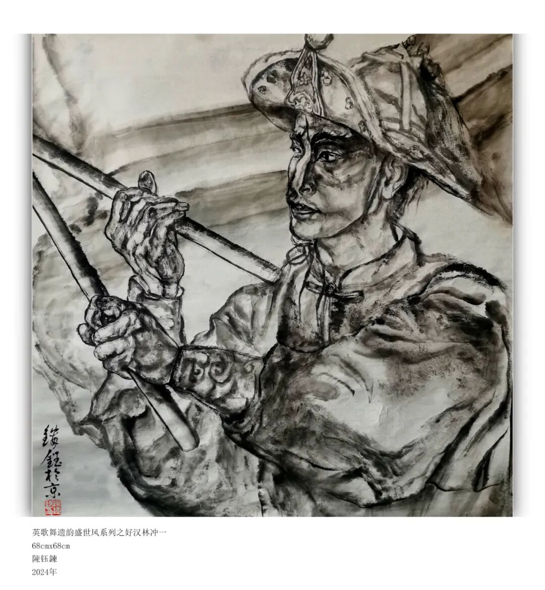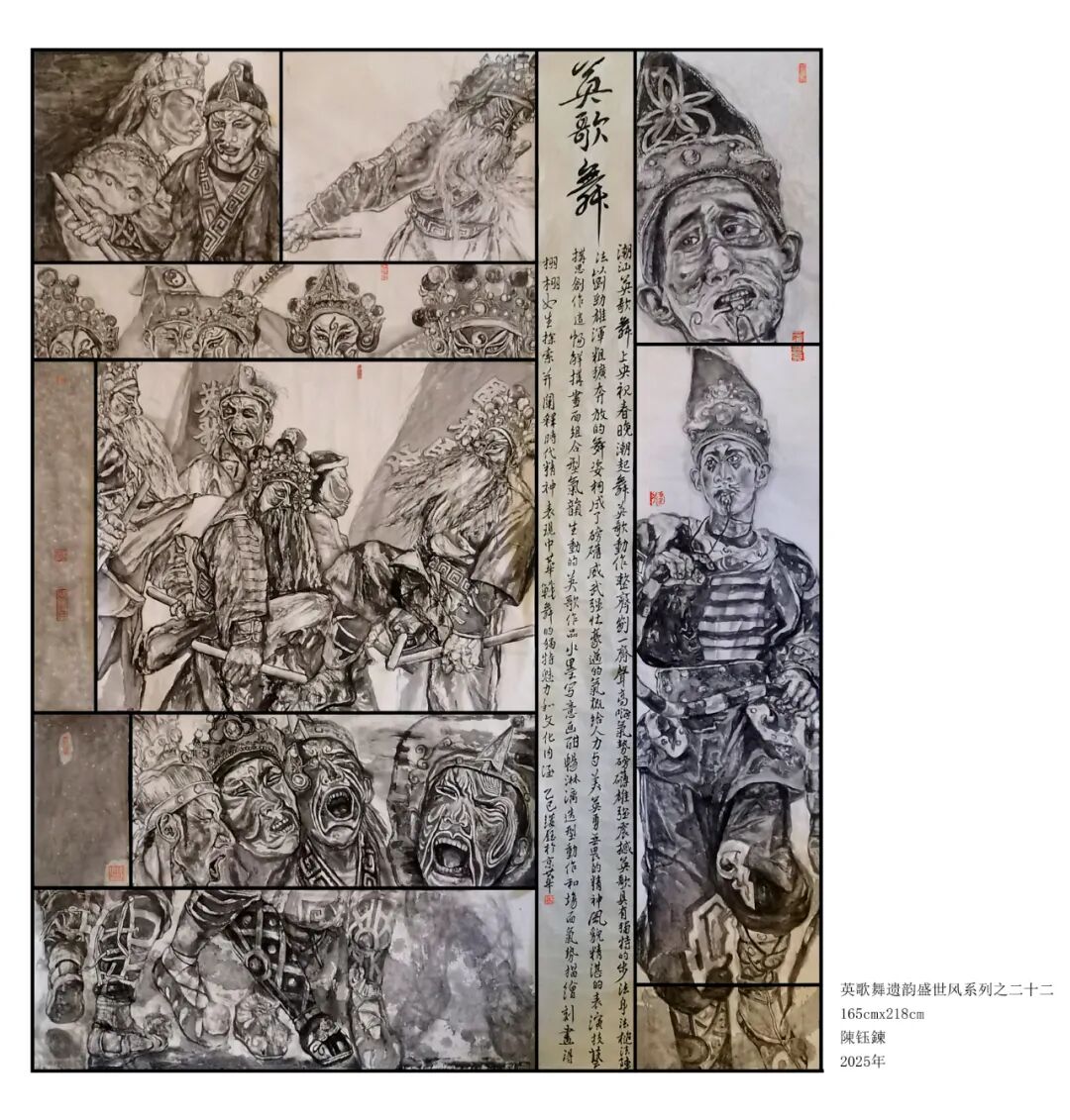 钰鍊言语不多,却对艺术有着执着近乎痴狂的热爱与追求。入行以来,经年笔耕不辍,画了大量作品。近年一组以家乡潮汕地区英歌舞为题的作品,倾注了他大量的心血,成就了他热爱生活、表现生活的艺术理想,以艺术的方式实践着他饮水思源、久客思归的游子情怀。此系列作品以现实主义创作手法,表现了英歌舞热烈刚劲的精神气息,其严谨的造型方式,厚朴的笔墨特色,加之简约而响亮的色彩运用。较好地扣合了英歌舞壮美的审美气息。