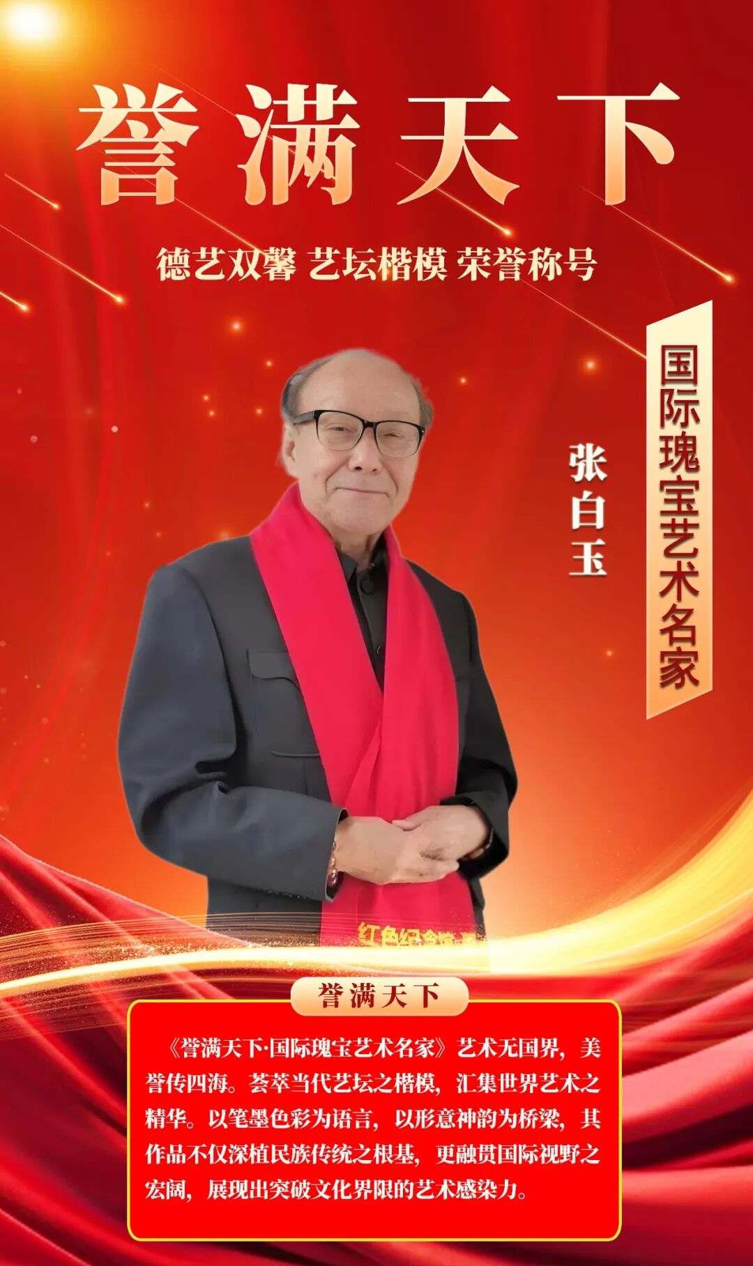 张白玉,名张钦,字白玉,号半岛居士,祖籍莱阳,定居烟台,1940年出生在胶东半岛黄海之滨狼虎山下艺术世家。自幼酷爱文学,擅长绘画,爱好戏剧和音乐,是多才多艺的艺术家,国家一级诗书画家,画坛百杰,中国文学艺术名家,十大艺术家,被媒体誉为人民功勋艺术家,现任中国民族文艺家联合会名誉主席等职。 1961年毕业于山东艺术学院,是山艺首届毕业生,黑伯龙的传人。毕业后遵照毛主席文艺思想走上一条与工农相结合的道路,在基层与工人,农民,渔民,商人,干部和学生滚打跌爬30年,有丰富的斗争经验和深厚的生活内涵。1992年由教委退休,历时八年,耗资10余万元,走遍全国,在新疆、内蒙古大沙漠与胡杨结下不解之缘,考察、采风、研究胡杨20余年,在民族传统绘画基础上,吸收西画中的精华,创作了大量作品,形成自己独特的风格——张白玉大漠胡杨。得到专家的好评和人民群众的欢迎。 1997年在西北边陲乌拉特开发成功内蒙古独特产——神奇功能的解毒醒酒《白玉杯》,成为纪念内蒙古自治区成立50 周年献礼精品,誉为《塞外独尊》。同年利用在戈壁沙漠捡到的960颗水晶玛瑙天然宝石组成宽一米,高一米半的中华全图《领土完整,国家统一》简称《宝图》,献给中华人民共和国香港特区政府,表达一颗爱国心。 2000年成立白玉创作室,专心文学研究,艺术创作和美术教育,受聘于烟台技术学院任教授,著有长篇《正道沧桑》《西部见闻》《锦绣山河诗书画》,出版《蓓蕾》《张白玉和他的学生》《张白玉大漠胡杨》《张白玉诗词与格言》已及专集、合集、入编典藏等书籍70余部。美术作品参加全国画展多次荣获金奖,发表多篇论文,反对腐败,反对崇洋媚外,反对艺术作品商品化,捍卫民族传统文化,坚持艺术为人民服务,做人民的艺术家。每一个时代都有每一个时代的丹青大德,他们统领艺坛,是谓丹青文化古今永传的雄才。晋 之顾恺之,唐之吴道子,宋之范宽马元,元之黄公望,明吴门四家,清有八怪!他们都是可 以彪炳汗清的丹青雄才。当代著名画家张白玉先生,亦复如是!他的绘画作品,必然会因有 博涉多能的笔墨功夫而令人万分折服! 张先生作画,法不欺人,功不欺世,具有极致高品的专业段位!这是因为先生把绘画的造型法度磨砺得炉火纯青。齐白石有弟子问,能不能不作工笔,直接写意?齐白石断然否定,认 为工笔写实是万法之本,如不能画得形实惟真,画画也就失去了根基。 现在看张白玉先生的绘画作品,写实水准如驻五岳之冠,起笔落笔可作金书绵绘!他的绘画 作品,由写实走上了超写实的境界,创作的领袖人物肖像作品,形神兼备,尤贵于神!纵观 画坛之古今,能把人物肖像作品画到如此境界者,前无古人,后无来者!因为古人无有如此 精湛的超写实技法,来者则无法用他的饱满深情去表达对领袖的无量敬爱!他有娴熟的超写 实之法与深厚的情感,双重加持创作领袖肖像,恰是人物作品的峰巅之作,观赏时统摄人心, 收藏时谓为绝世珍品!张白玉先生的人物作品,上作庙堂大鼎之功,领袖作品画得正大气象。亦画文化人物、时尚 人物。画孔子极是圣师风范,钟馗则画得生动多趣,美人常作娇俊典雅!线描功夫精湛入微, 兰叶描飞逸,铁线描精神,游丝描高古,笔笔相生,笔笔相应,把中国画依线造型的功夫表 现得无以复加!时代画圣之格局,亦由先生的精湛笔法得以构建!他的画不但有卓越的传承 功力,亦有笔墨当随时代的精彩创新,师古法而不固于陈旧,修丹青传文化,恰是当代之圣 贤!他画画,最有借古开今的新思维、新实践、新功勋! 先生画山水,外师造化中得心源!有应物象形的笔墨功夫,有随类赋采的渲染气韵。骨法用 笔的特征相当鲜明,可以塑造青绿山水显儒雅,也可以画金碧山水寓宏运。通过色不碍墨, 墨不碍色的铺陈,把山水画的雅俗共赏,最宜品味,有很强的可读性。挂在厅堂,有极强的 艺术饰美效果,东崖复沓蔽轻雾,西峰峥嵘喷流泉,三山之巅,蓬荜生辉! 丹青雄才,博涉高能。张先生的画题相当广泛,凡属物像都可以遂心应手入丹青!兼工带写, 游刃有余!花鸟、动物都可以夺其精神、掠其体貌,极有文人画的天质要妙,笔墨赋于情, 色彩融于性,以性情作丹青,大画小画皆显性灵之品!耐看耐品,总是令人赏心悦目,流连 忘返!他有大师级的造诣,却有关照大众审美的情怀,画笔为众生而作,不孤不傲,接地气, 谙人心,此谓德艺双馨,大师必是大贤!