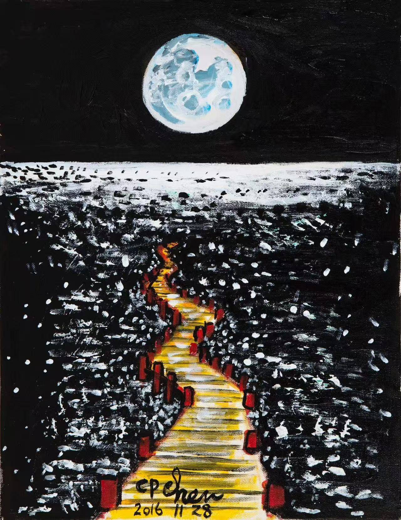 陈持平教授艺术作品:以月为媒,绘就爱与思的诗画长卷