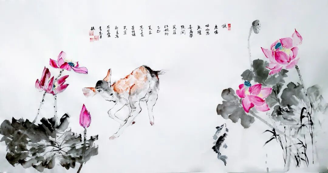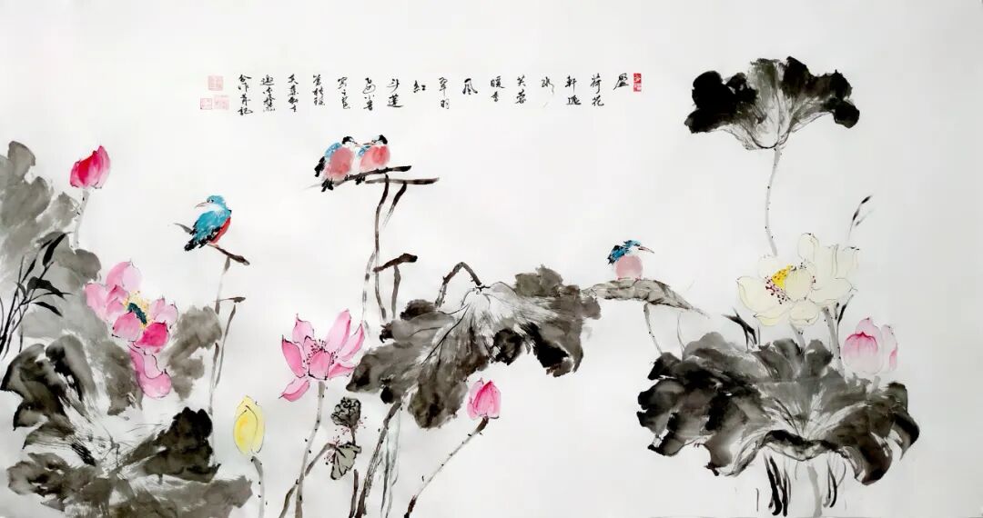 花鸟国画《苍梧谣·芙蕖》(180*97cm)