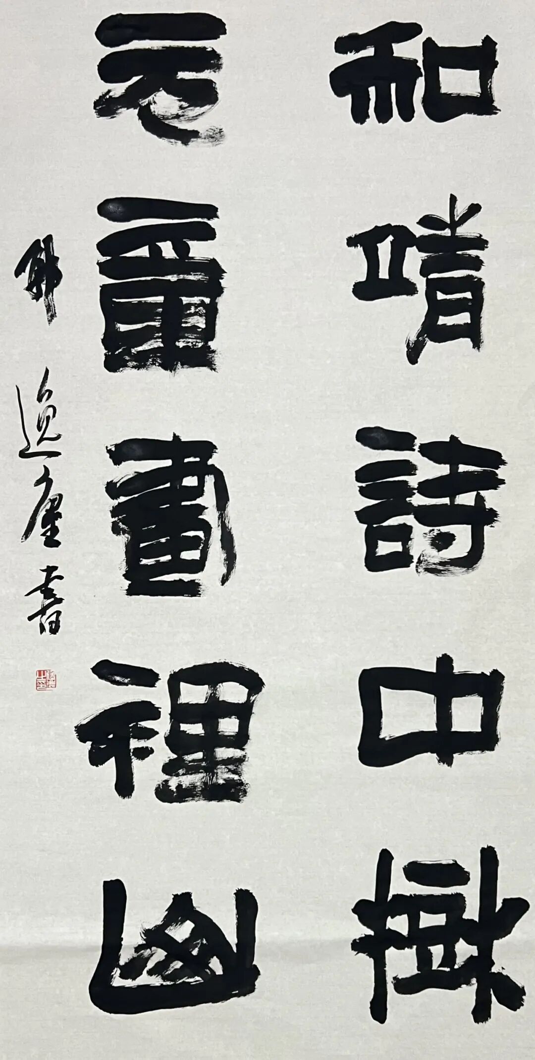 从小受外祖父陈天然影响,酷爱丹青,潜心研习名家名帖,书法以行书为主,汉隶为宗,兼魏碑,篆书。