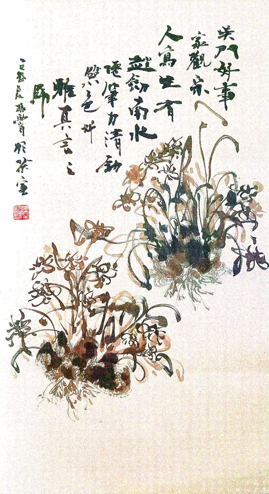 李振霄,号赏春闲人,生于温榆河畔梅所屯李姓人家,已知天命。振霄受严父影响,自幼习书,振霄笔下兰花尽情吐蕊,题咏诗文撇捺溢香,振霄喜兰花,兰花爱振霄,两者已融为一体。