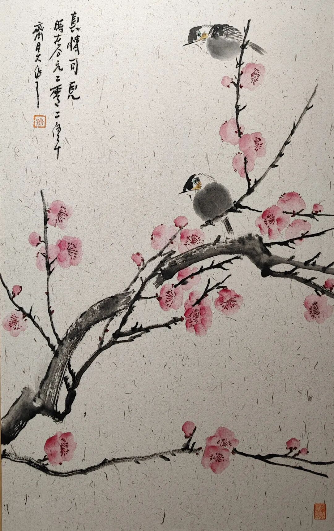 总之,齐昊的花鸟画在传承与创新中拥抱艺术春天。他的花鸟画艺术,如同一株植根于传统土壤、沐浴着时代阳光的新苗,既保持着与历史文脉的深刻联系,又展现出蓬勃的生命活力。从科尔沁草原到天津美院,从师承名门到自我探索,他的艺术之路印证了一个真理:真正的艺术创新必须扎根传统,真正的传统传承需要时代精神的滋养。他笔下的"百花不落",既是对自然生机的赞美,也是对艺术生命力的隐喻——只要保持对传统的敬畏之心、对创新的探索之志、对生活的热爱之情,艺术之树就会常青,艺术之春就会永驻。
