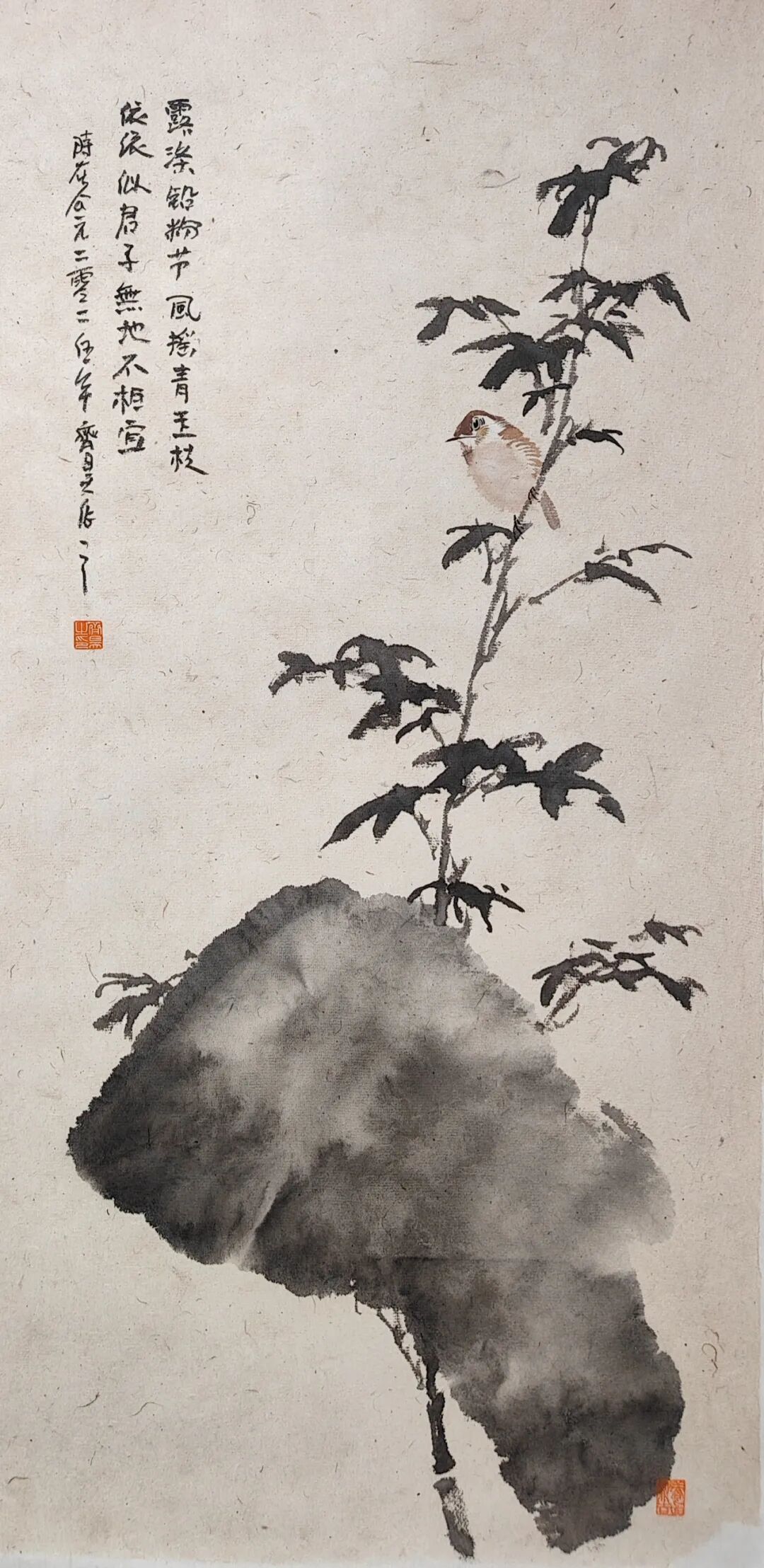 艺术风格的形成是艺术家精神世界与技术语言长期磨合的结果。齐昊的花鸟画在传统文脉的滋养中,逐渐形成了寓意为魂、笔墨为骨、淡雅为韵的风格特征,这种风格既承载着文人画的精神基因,又洋溢着当代青年的生命感悟,在意境营造中实现了笔墨语言的现代转化。