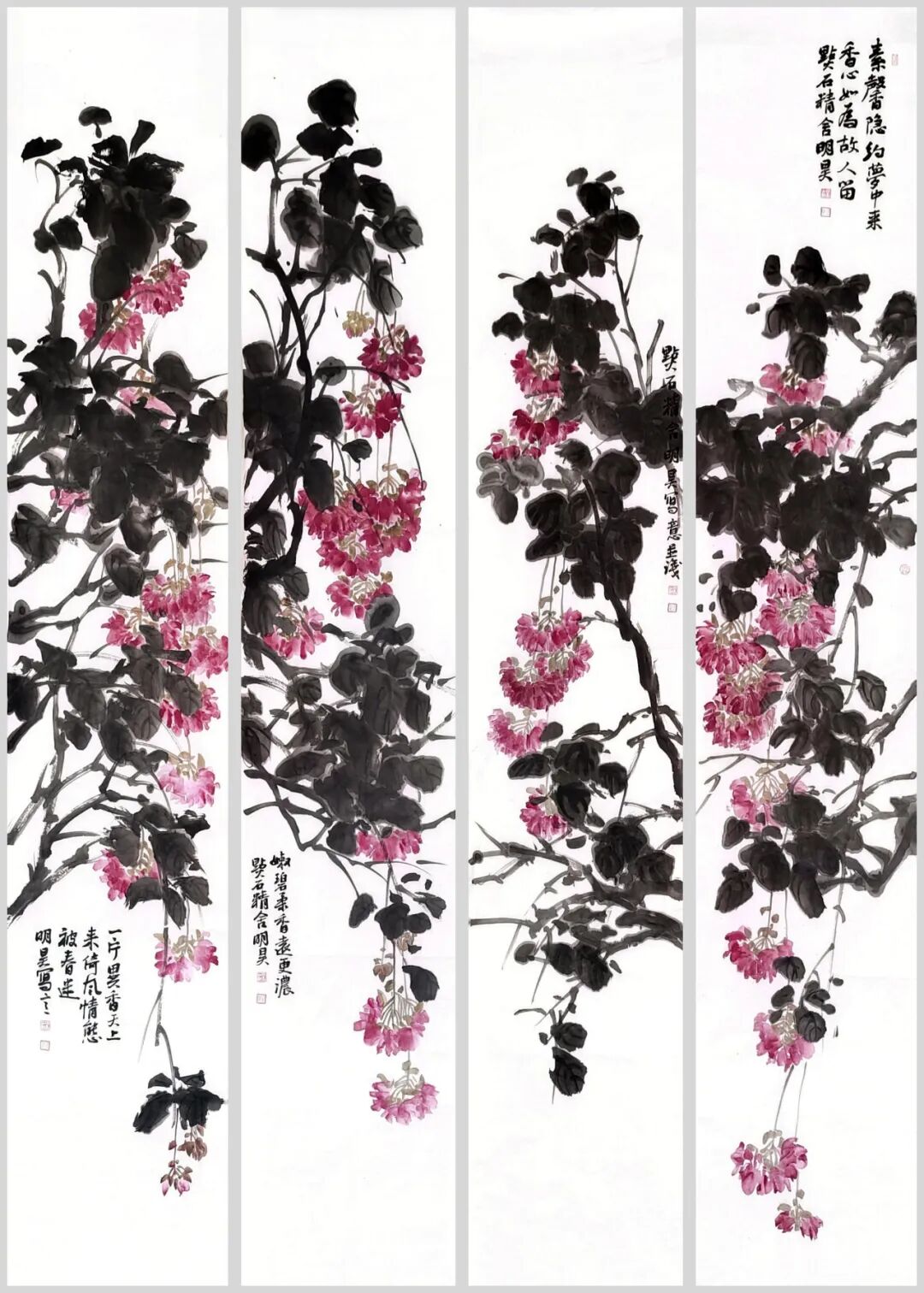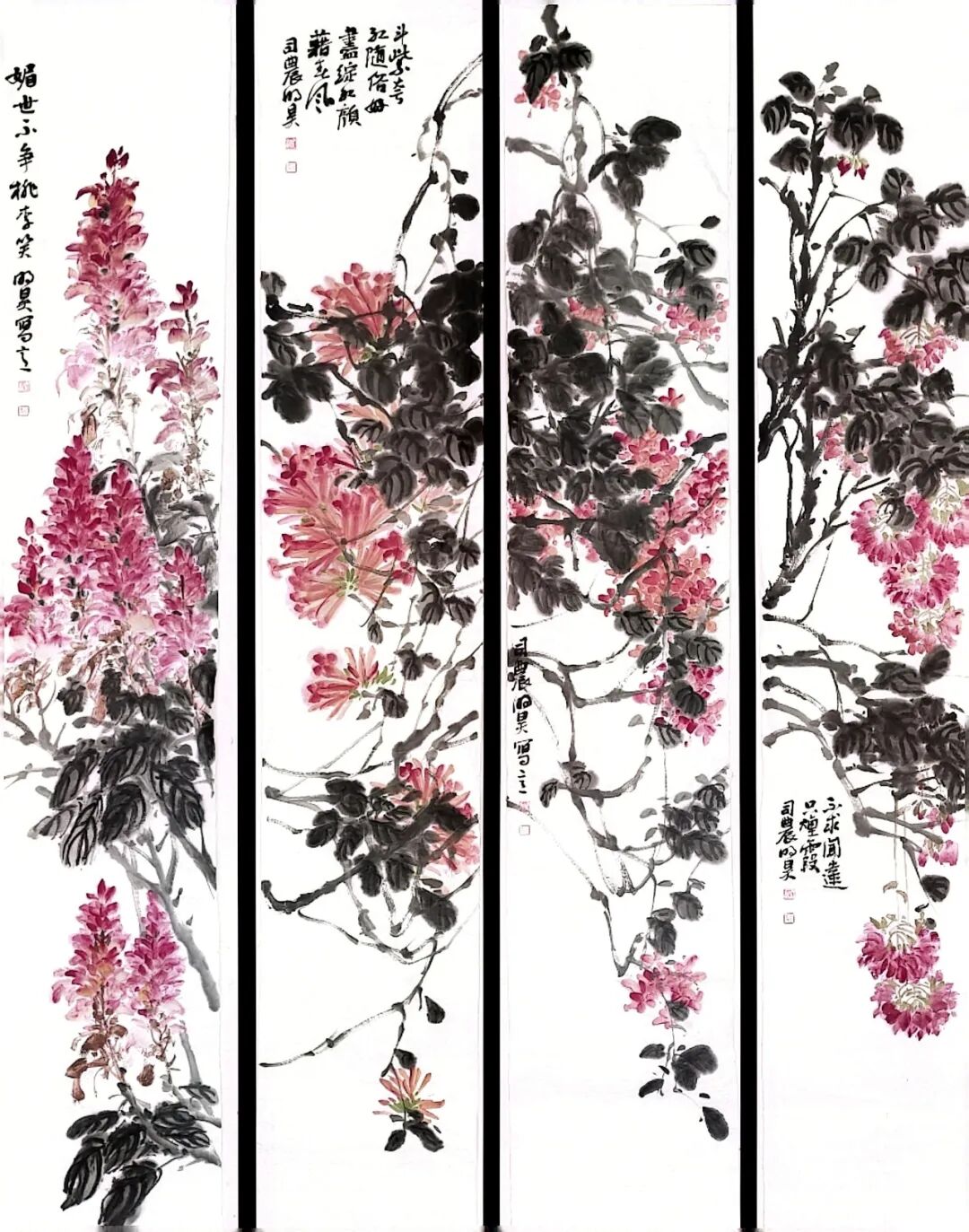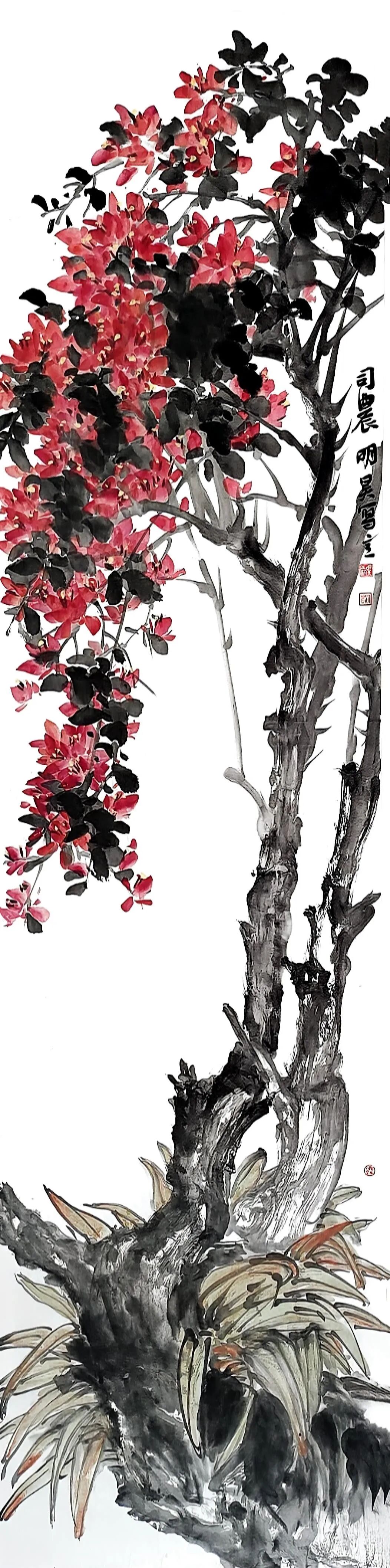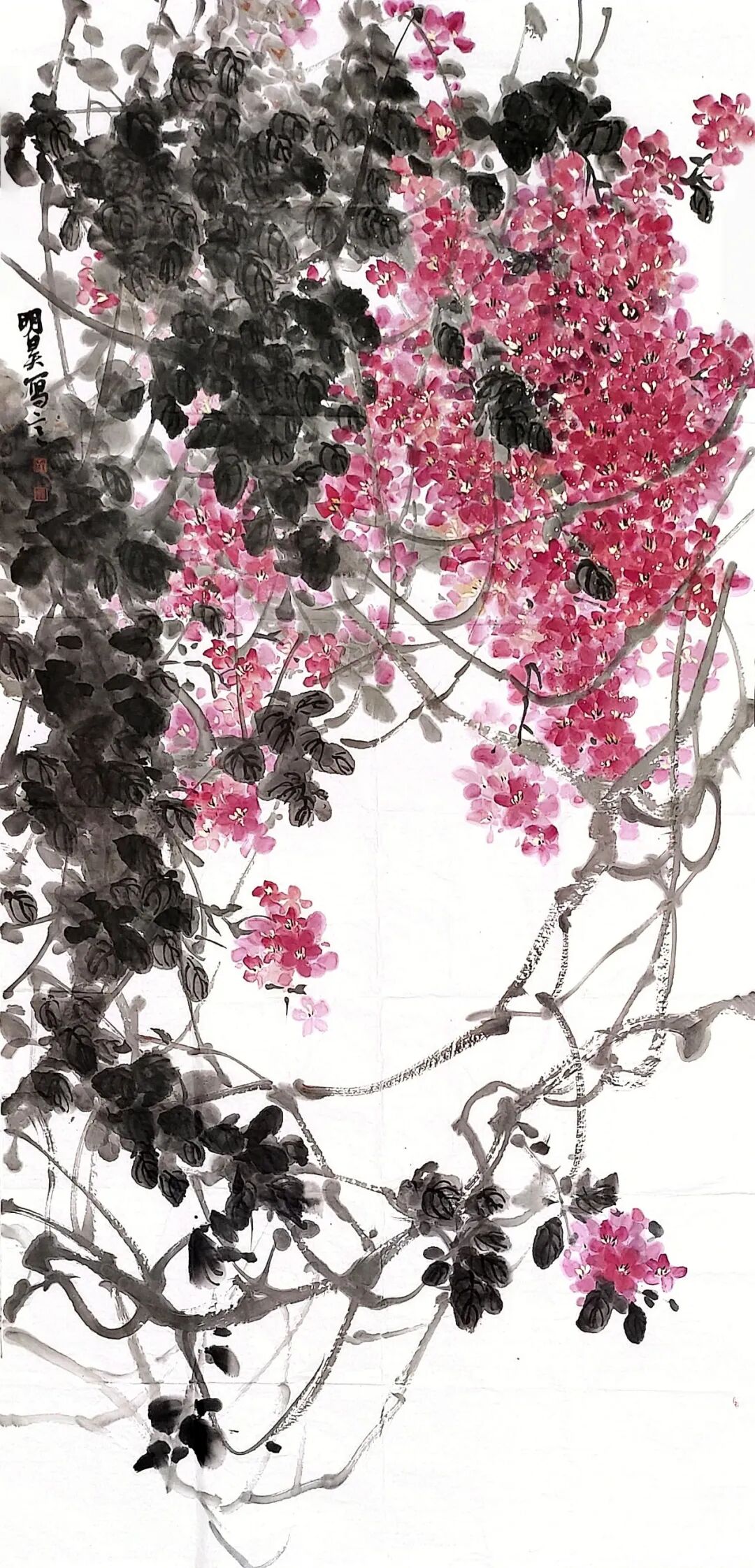 翰墨挥洒,若蛟龙游天,刚劲处似壮士舞剑,豪气干云;笔锋流转,如清风拂柳,飘逸间尽显柔美,雅韵悠长。山水画卷,层峦叠嶂,翠色欲流;江河湖海,浩渺无垠,涵容天地。娇花带露,鸟翼振风,梅兰竹菊,君子四德,皆于笔墨色彩之中,绘就卓尔不群的艺术盛景。