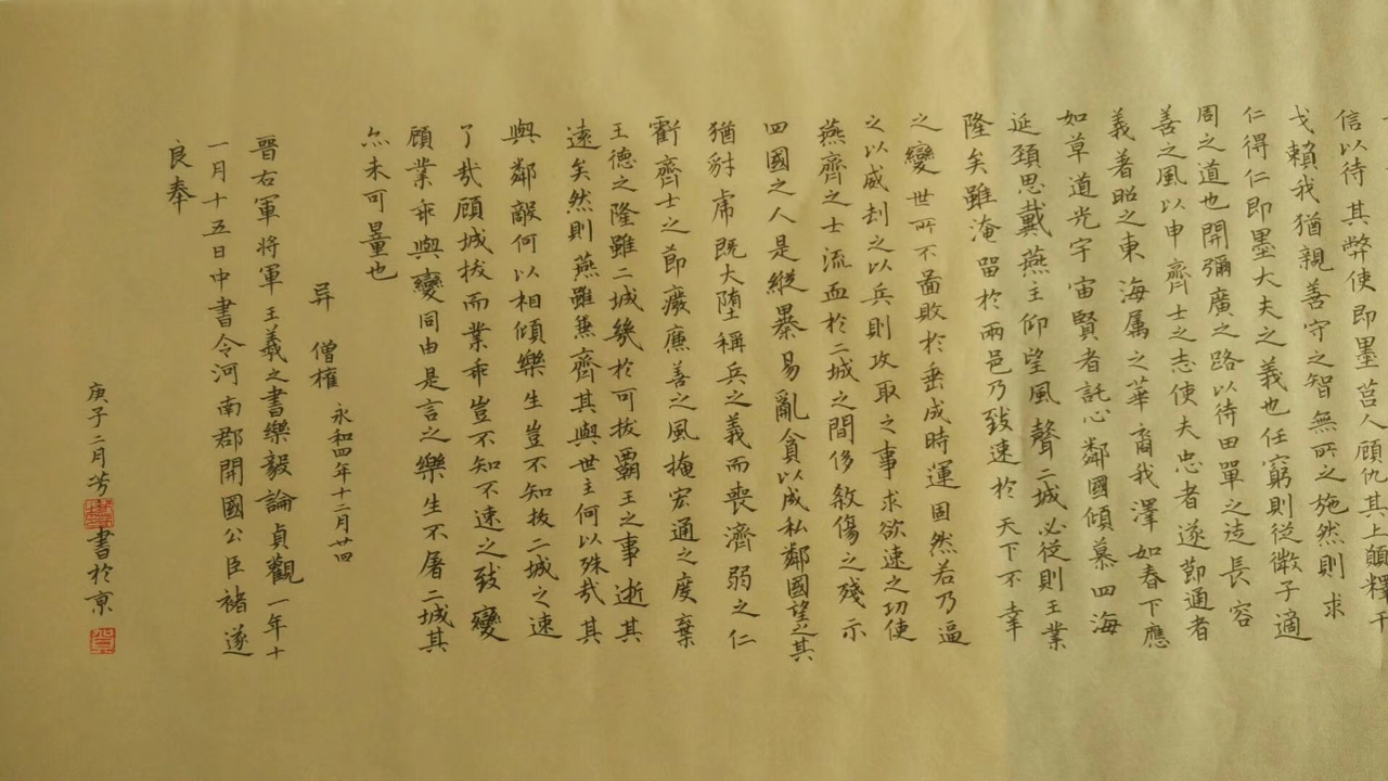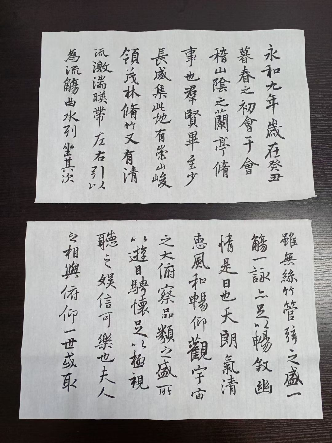 其书法《兰亭序》更显功力,墨色浓淡如“雨前初见花间蕊”,字迹遒劲似“铁画银钩”,行笔间既有“笔落惊风雨”的豪情,又含“润物细无声”的细腻,落款与印章相映成趣,如“画龙点睛”,使整幅作品在形式与内容上达到“天人合一”的和谐。