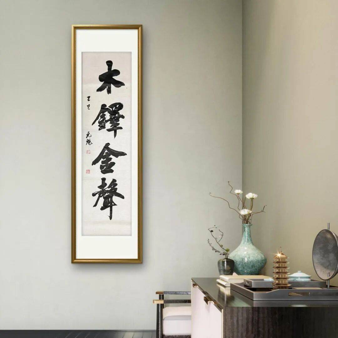 于元魁老师对书法线条的把控,达到了精妙入微的境界。其线条或如锥画沙,劲挺有力,充满质感;或如行云流水,飘逸洒脱,富有韵律。在“木铎金声”等榜书作品里,线条厚重雄浑,每一笔都似蕴含千钧之力,既展现出汉字结构的庄严与稳重,又透露出一种振聋发聩的文化呐喊,仿佛木铎声响,穿越时空,传递着知识与思想的力量。而在一些行草创作中,线条则变得灵动多变,粗细、枯润、疾徐的变化自然天成,线条的婉转与留白的处理相得益彰,营造出如兰般清雅、似竹般虚怀的意境,体现出作者对线条节奏与气韵的精准把握。