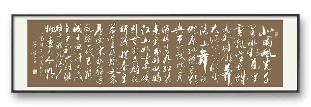 难能可贵的是,先生从不抱残守缺,更不故步自封。他潜心研索历代名家碑帖,博采众家之长,将千年书法艺术的瑰宝精华融于血脉,始终秉持 “与古为新” 的创作理念。在他看来,传统从不是束缚手脚的枷锁,而是滋养创新的沃土。他深研古人用笔的精妙,让作品的韵律如古典诗词般流转自然,却从不止步于 “复刻” 古意。那些融入笔墨的时代知识结构、多元艺术思潮,从不是刻意添加的 “标签”,而是如春雨润田般自然渗透:或许是线条里藏着当代人对生命张力的理解,刚劲中多了几分灵动;或许是章法中透着对现代审美节奏的呼应,疏朗间多了几分意趣。正因如此,他的字既有 “古调虽自爱” 的沉静厚重,又有 “新声入耳来” 的鲜活生机,让古老的书法艺术在新时代焕发出全新的生命力。