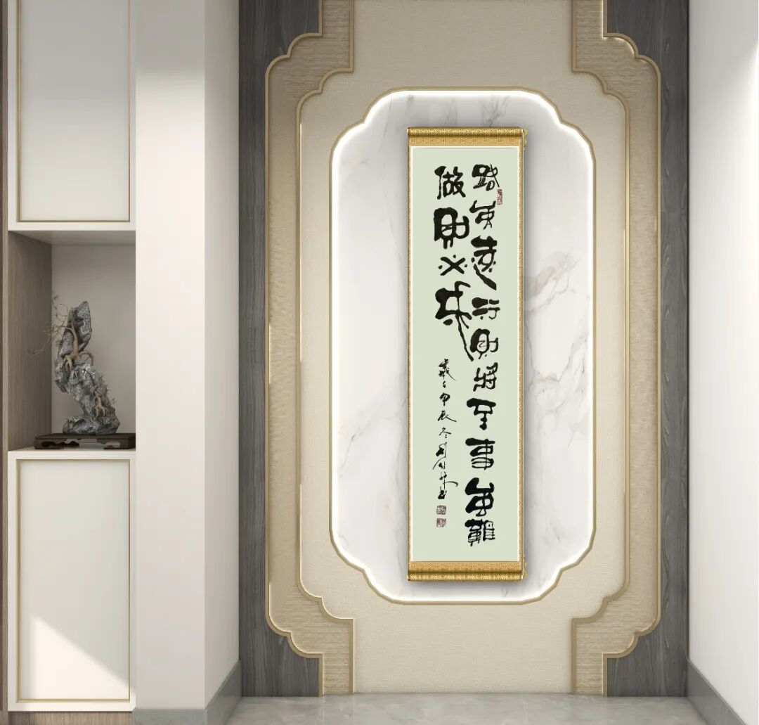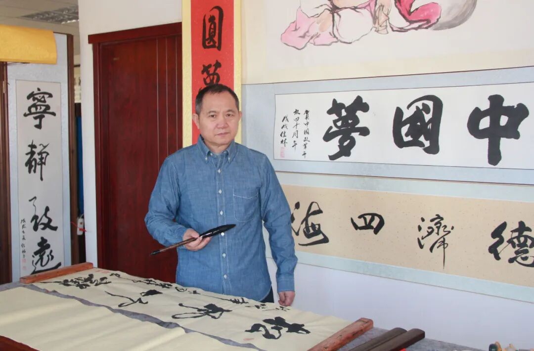周佳林先生的书法艺术,首先令人感受到的是其深厚的文化基因与扎实的传统根基。作为齐白石故里——湖南湘潭白石铺杏子隖走出的书法家,他自幼受"白石文化"熏陶,启蒙于白石后人,这种地域文化的滋养为其艺术创作注入了独特的金石气韵与乡土情怀。观其作品,无论是遒劲的笔力还是开张的结体,都能窥见其对传统碑帖的深刻领悟。尤为难得的是,他并未止步于对先贤的简单模仿,而是在国家开放大学书法学院系统研习期间,通过连辑、刘洪彪等名师的指点,将湖湘文化的雄强气质与当代审美意识相融合,形成了既具古意又见新风的笔墨语言。其作品中那些宛若刀刻的线条、虚实相生的章法,正是对"白石精神"最生动的当代诠释。