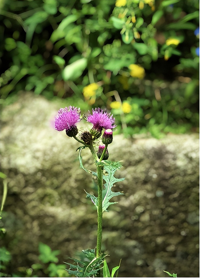 路上的仙花、仙草渐渐多了起来,一簇红蓼在路边肆意绽放,大片的野菊花在山崖随风起舞,精灵般的鸭跖草如蓝色妖姬,默默地在石缝间散发着幽香……。山下的大蓟花早已凋谢,而这里的大蓟却正花开灿烂。玉芝姐的背包里,不知何时已经装满了仙草,此刻,还在低着头,采撷着路边碧绿肥厚的车前草;帽檐大哥已经钻进了松林,寻找他最爱的松莪去了。回来的时候,想不到,竟笑意盈盈递给俺一朵硕大的灵芝。