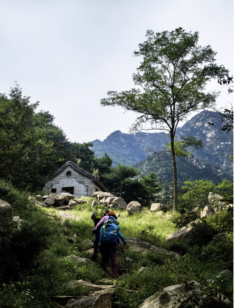 小明家滩幽长的胡同内停好车,四人迅即沿河边荒蹊悠悠前行;临近白露,雨后初霁,秋高气爽。微笑着与进山秋收的村民互致问候,瞅一眼路边岩石中的“树坚强”,小心趟过潺潺的溪流,悠悠穿过栗树遮阴的小径,8:20分,四人即来到了护林房。