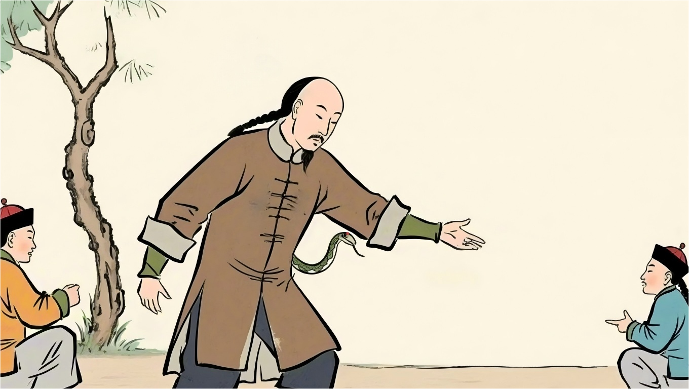 耍蛇人满心欢喜,带着小蛇回去后,便开始了训练。小蛇十分聪慧,盘旋弯曲的动作都合乎规矩,与二青相比毫不逊色。耍蛇人越看越喜欢,便给它取名为小青。此后,他带着二青和小青四处表演,所到之处,观众无不拍手叫好,他也因此获利颇丰。一般来说,耍蛇人用的蛇不超过二尺,蛇长大了体重增加,表演起来就不太方便,所以大多会换掉。由于二青特别驯服,耍蛇人实在舍不得它,便一直没有急着更换。