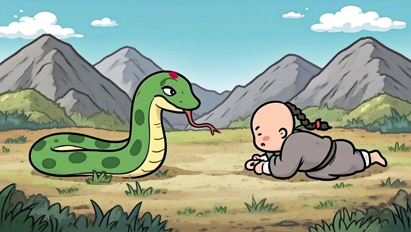 一天,耍蛇人途经一座山寺,此时天色已晚,他便在寺中借宿。天亮后,他准备带二青出去表演,打开竹箱一看,二青竟不见了!刹那间,他的心沉入了谷底。他惶恐不安地四处寻找,口中不停地呼喊着二青的名字,可始终不见二青的踪影。以往,每当遇到林丰草茂的地方,他都会将蛇放出来,让它们自由活动一会儿,而蛇也总是能乖乖地自行回来。因此,他心中仍存着一丝侥幸,盼望着二青能像往常一样,突然出现在他面前。他无奈地坐在原地,眼神中满是焦虑与期待。眼看着日头越来越高,可二青依旧不见踪影。他只好怏怏不乐地起身,拖着沉重的步伐准备离去。