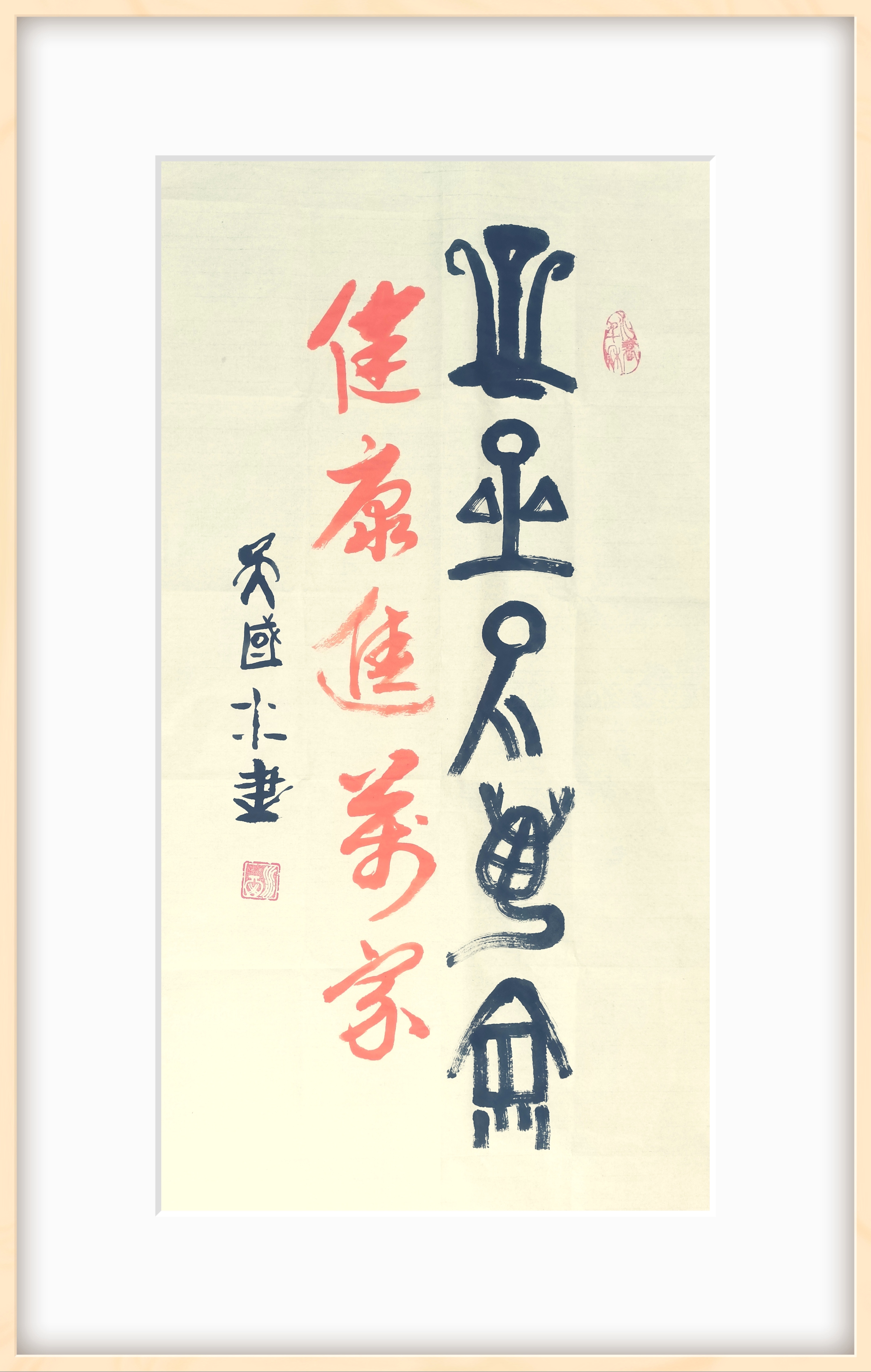 图5、水书书法家为社区卫生服务中心题词:健康进万家。