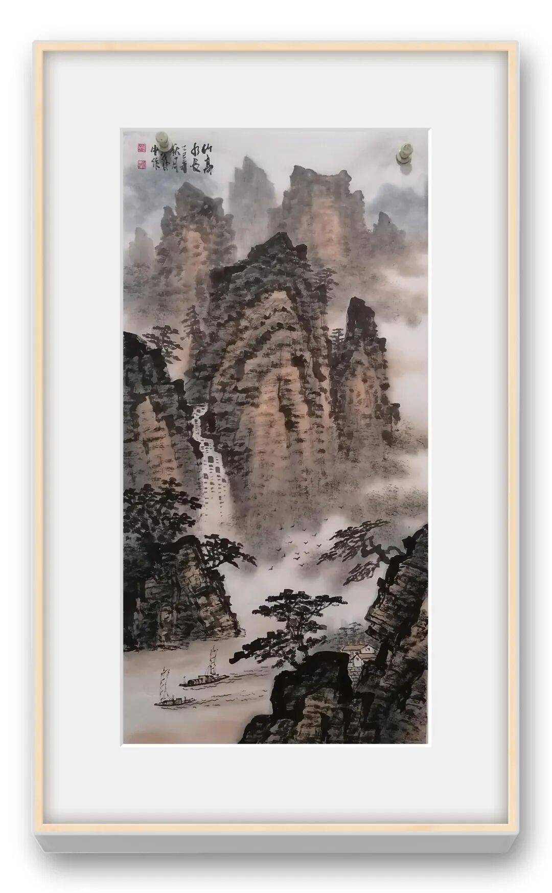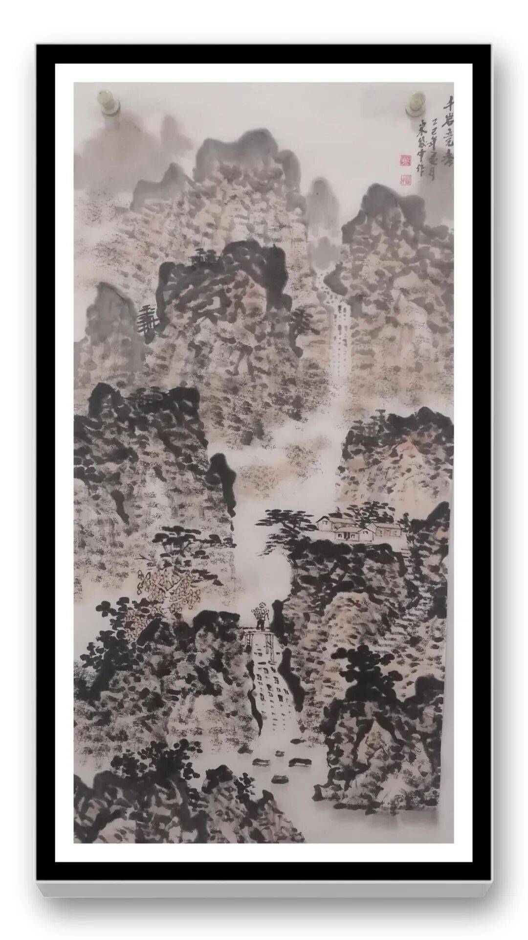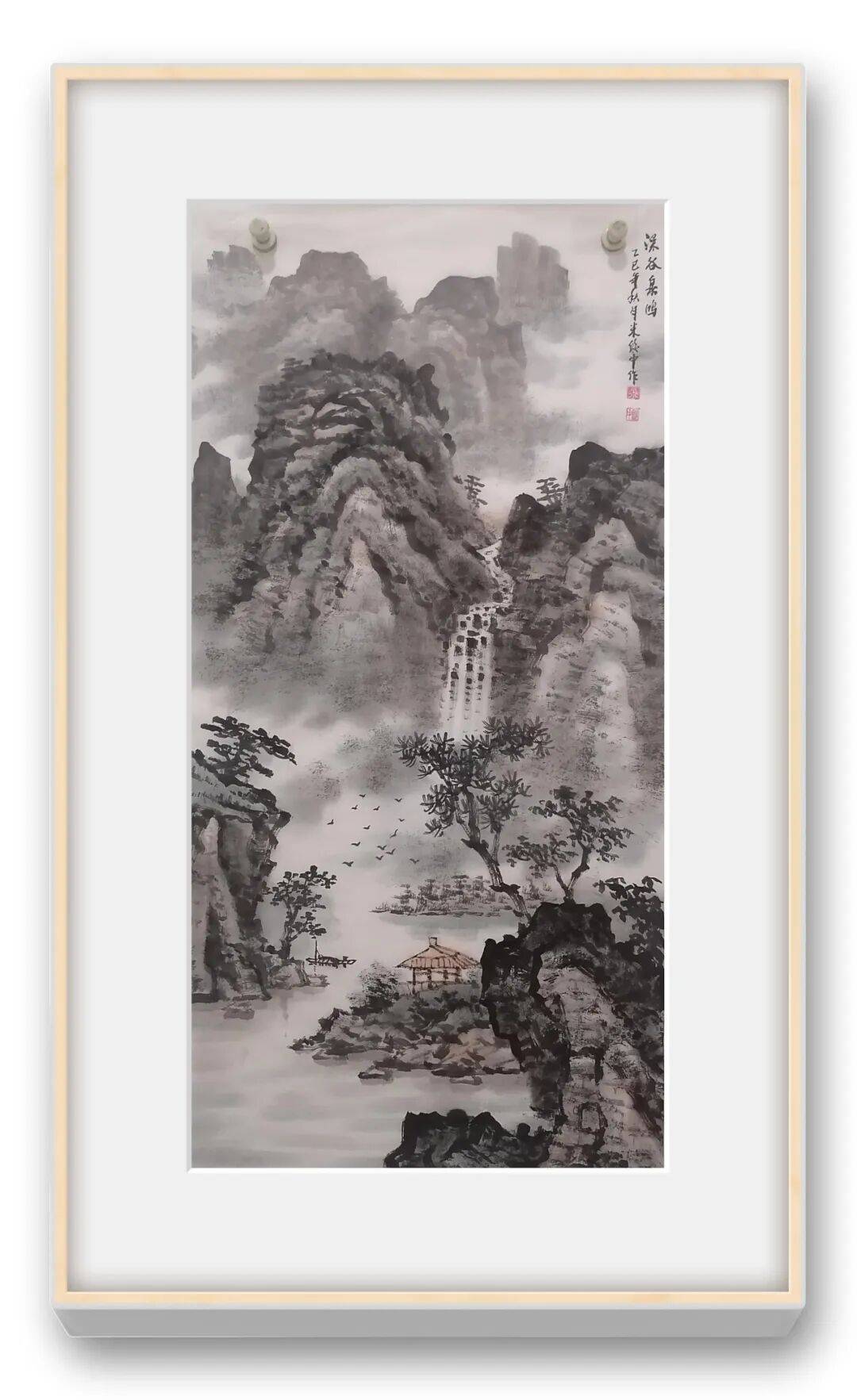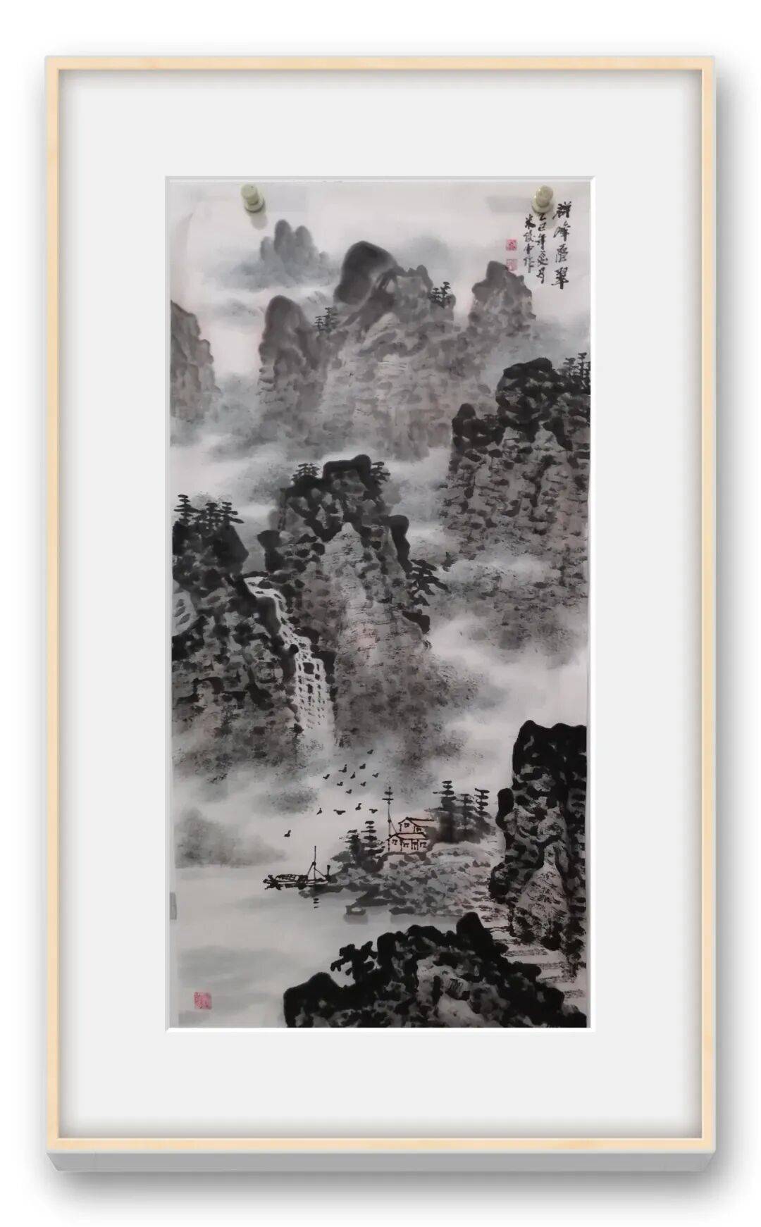 而在墨法的运用上,米俊中先生更是匠心独运。他熟练掌握了泼墨、积墨、破墨等多种墨法技巧,让墨色在宣纸上呈现出丰富的层次与变化。书画里,云雾缭绕的山峦,通过淡墨的层层渲染与积叠,营造出一种朦胧缥缈、若隐若现的意境,将云岭的幽深与神秘展现得淋漓尽致。那浓淡相宜的墨色,如同一首优美的乐曲,有着轻重缓急的节奏变化,使画面充满了节奏感与韵律美。这种对传统笔墨的精准把握与娴熟运用,不仅是对前人艺术成就的致敬,更是为其山水画创作筑牢了根基,让作品具备了深厚的文化底蕴与艺术感染力。