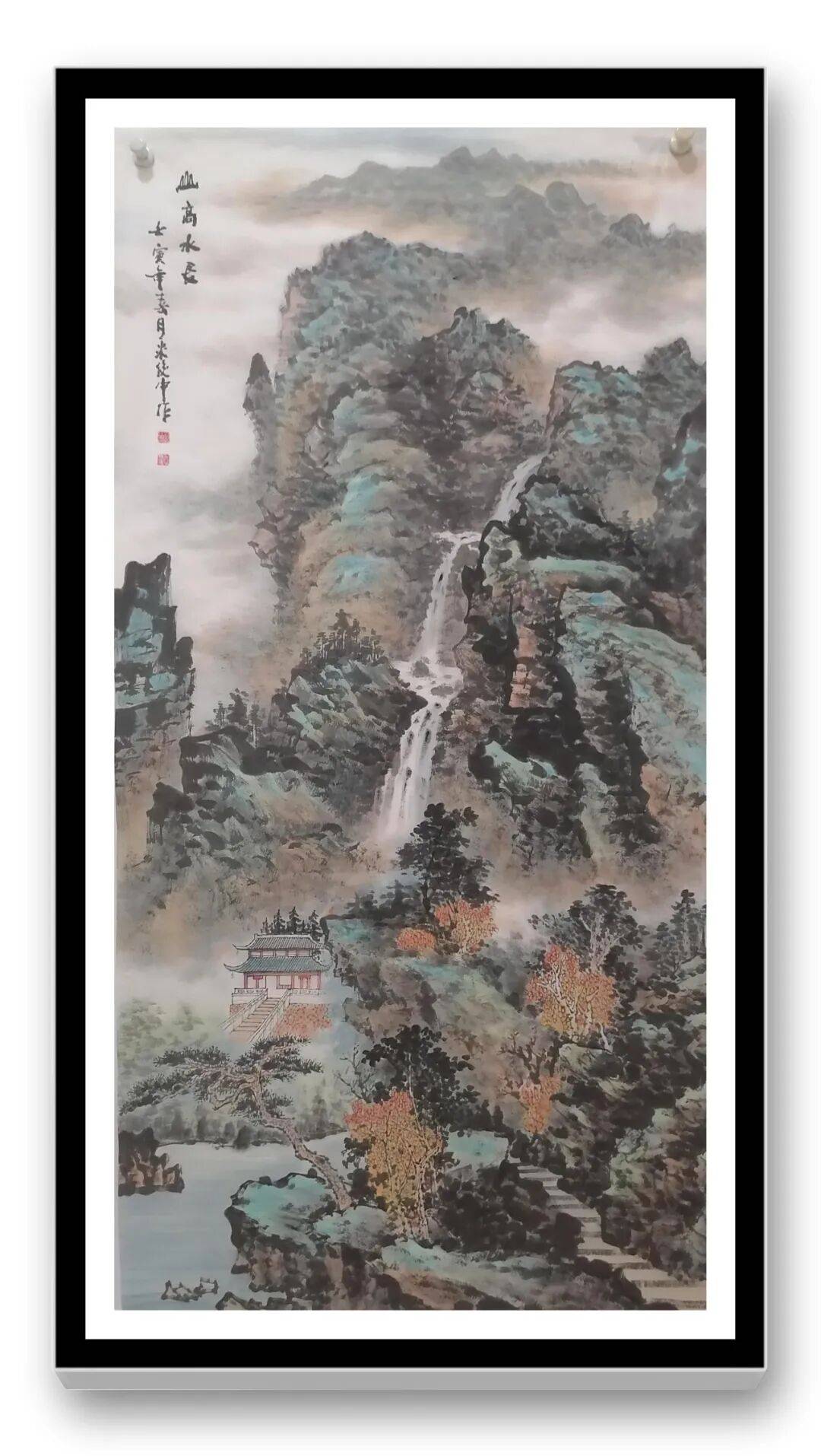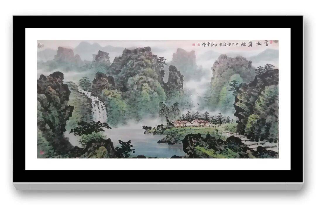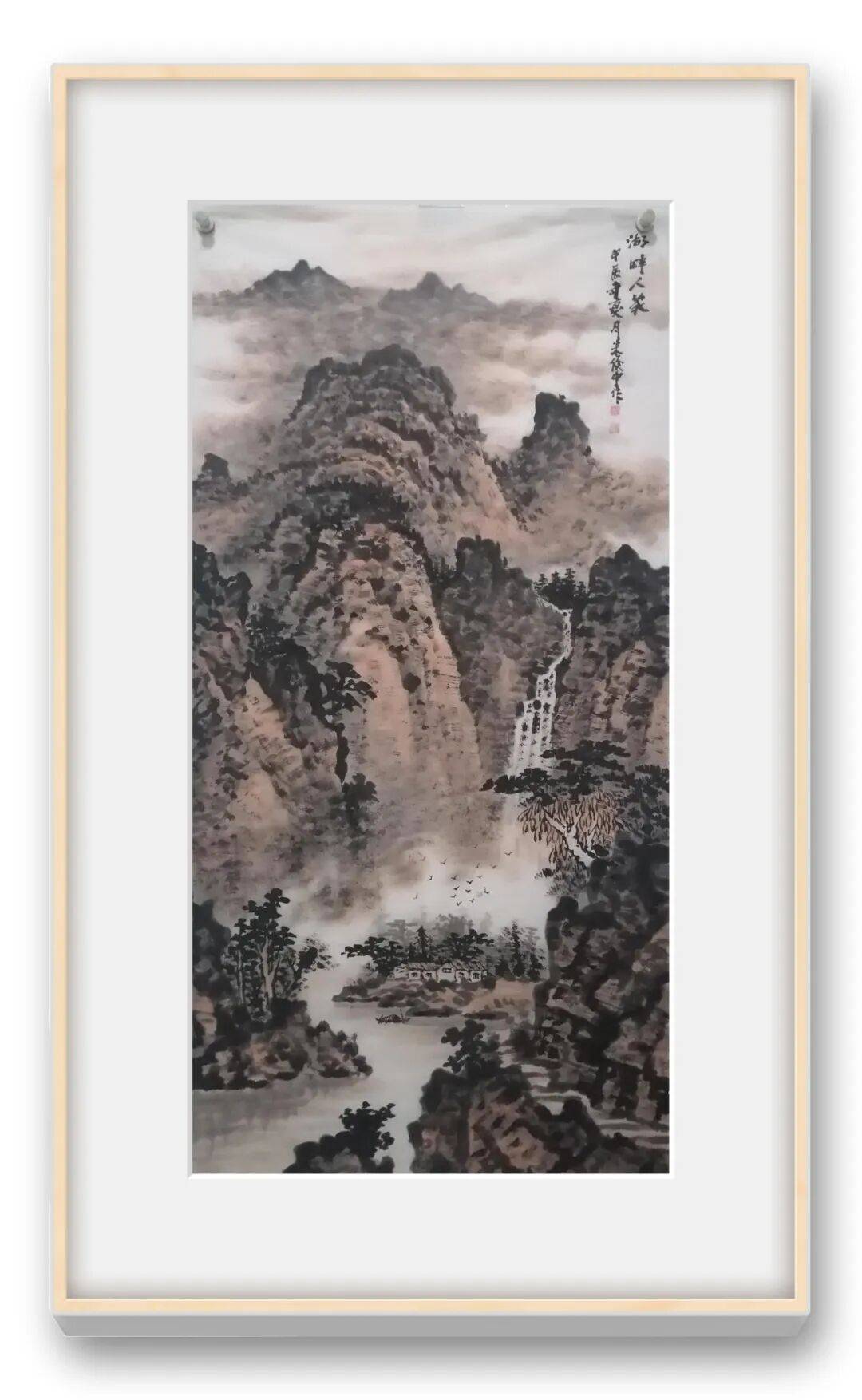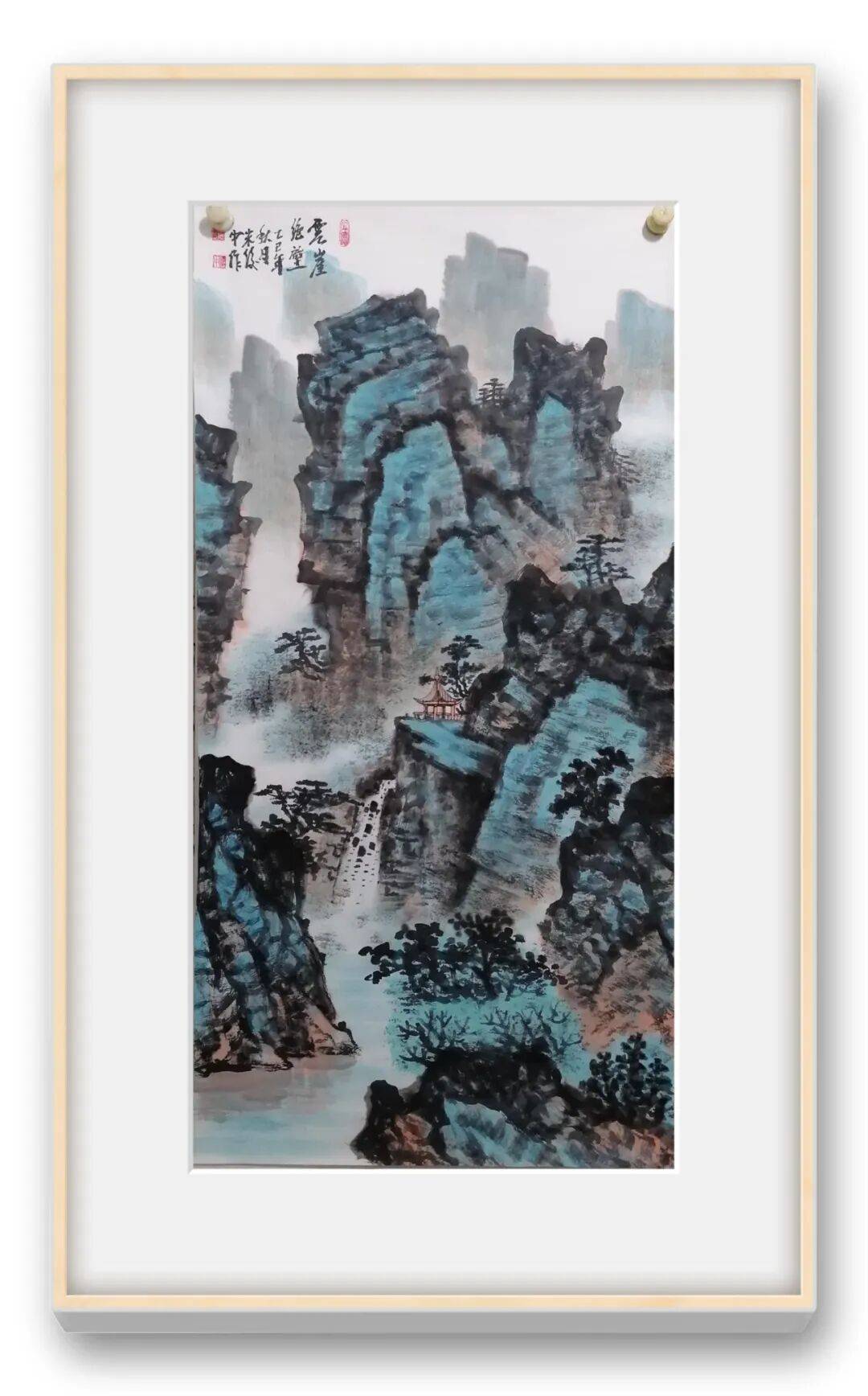 而在墨法的运用上,米俊中先生更是匠心独运。他熟练掌握了泼墨、积墨、破墨等多种墨法技巧,让墨色在宣纸上呈现出丰富的层次与变化。书画里,云雾缭绕的山峦,通过淡墨的层层渲染与积叠,营造出一种朦胧缥缈、若隐若现的意境,将云岭的幽深与神秘展现得淋漓尽致。那浓淡相宜的墨色,如同一首优美的乐曲,有着轻重缓急的节奏变化,使画面充满了节奏感与韵律美。这种对传统笔墨的精准把握与娴熟运用,不仅是对前人艺术成就的致敬,更是为其山水画创作筑牢了根基,让作品具备了深厚的文化底蕴与艺术感染力。