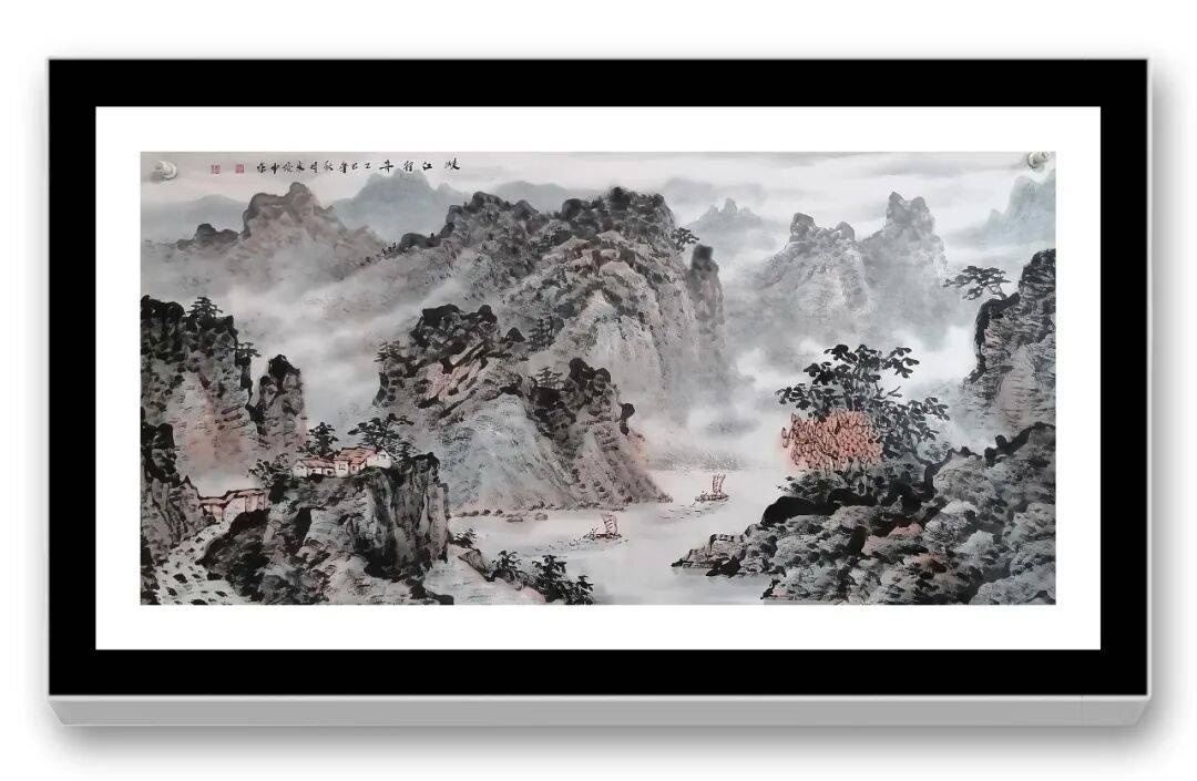 在笔法上,米俊中先生深得“骨法用笔”之妙。其勾勒山石轮廓的线条,或劲健挺拔,如刀削斧劈,尽显山石的峻峭刚毅;或灵动婉转,似行云流水,勾勒出山水的灵动气韵。以《峡江行舟》为例,画中描绘的峡江山石,线条遒劲有力,在转折处顿挫有致,既精准地塑造出山石的结构形态,又赋予了山石以生命的质感,仿佛能让人触摸到山石的坚硬与冷峻。