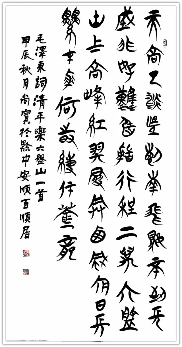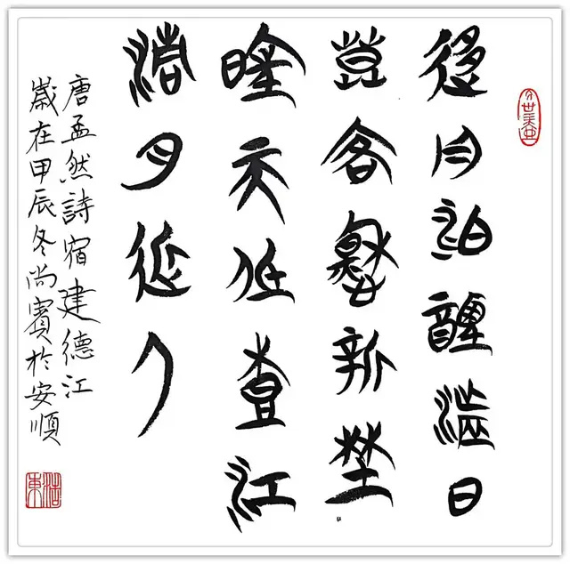 某于书道,尤嗜八分、楚简与草书。隶书取法秦汉简帛,融《张迁》之雄浑、《曹全》之飘逸,求端庄而不失灵动,时人谓有庙堂之气。楚简一道,遍览郢都竹简遗墨,见其结体奇诡、笔法恣肆,乃应和笔意,整饬结体,创“浩东楚简”之式,以现代审美融古拙之韵,世人谓为研古出新。草书则宗法“二王”,参以旭、素笔意、板桥体之趣味,使转间求法度,虚实中见性情,章法如星斗错落,笔势若江河奔涌。