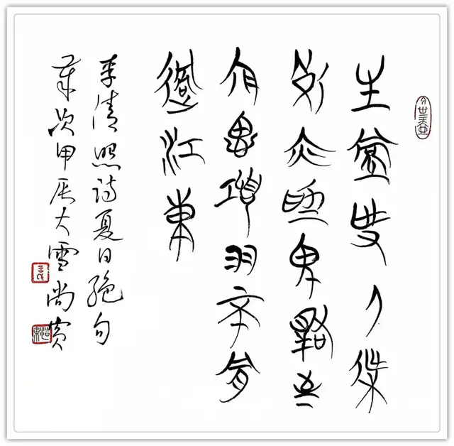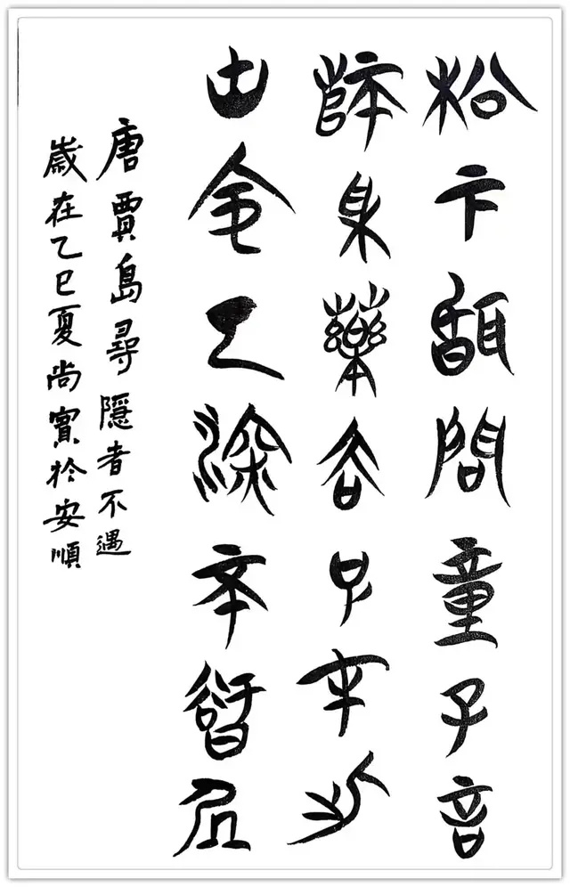 及入黔中庠序(贵州师范大学),岁在甲子至丙寅间,从包俊宜、鲍贤能、王萼华、杨霜、黄济云、周运真诸先生,随培训班系统学习书法。晨临《礼器碑》,夜摹《十七帖》,知藏锋露锋之变,悟提按使转之法。后又入京师,于中国人民大学郑晓华、邵秉仁诸公工作室深造,得刘洪彪、张继、刘恒、朱培尔、张改琴诸名家指授,始知篆隶楷行草五体同源,秦汉简帛、晋唐法帖皆可入怀。