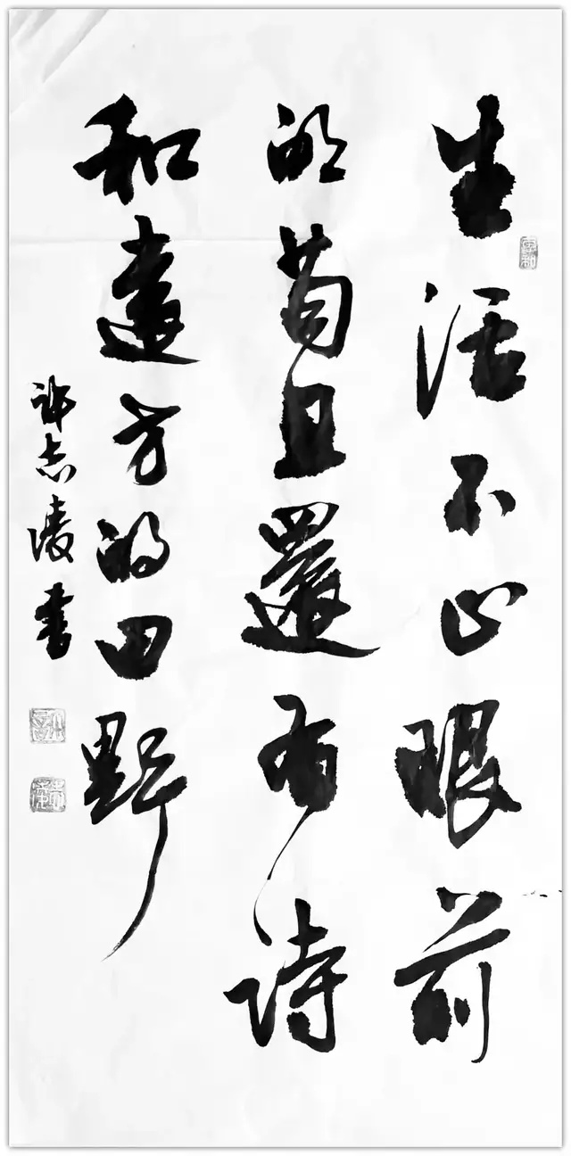 许志凌的书法,是岭南风骨与时代精神的交响——他以笔为舟,载传统之厚重,渡创新之激流,在黑白间书写华夏文化的生生不息。
