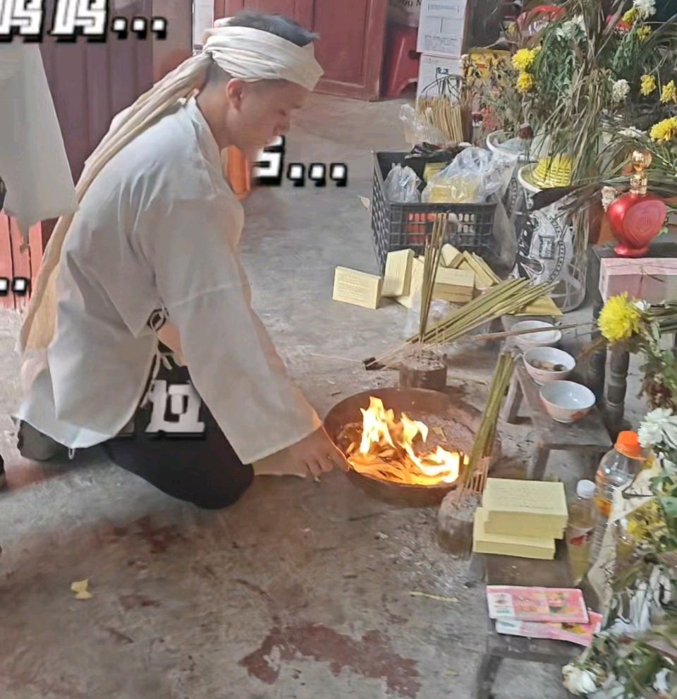 昨天中午十点整,远处的亲戚朋友都陆续前来看最后一眼老人,老大崽青年时期是去别处上门,当了上门女婿,听闻老父亲年老体衰不幸离去,心里十分伤心,他披麻戴孝在来到亡父棂前跪起,一边烧香一边痛哭流涕: