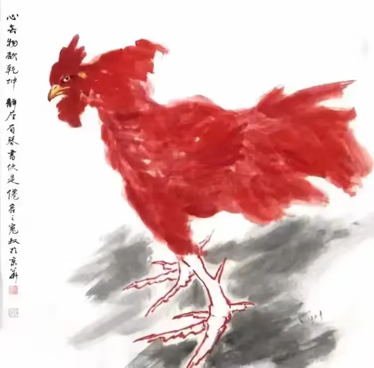 我一直笃信,艺术之高境,不在形似,而在传神;不在技巧之繁复,而在心象之真淳。尉明宽先生以画鸡名世,其笔下雄鸡,非止禽鸟之写照,实乃人格之象征、精神之投射、灵魂之显影。今得见《尉明宽题鸡诗全集》裒然成编,展卷之际,墨香与诗意交融,画意共文心辉映,让人不禁抚卷沉吟,心驰神往。