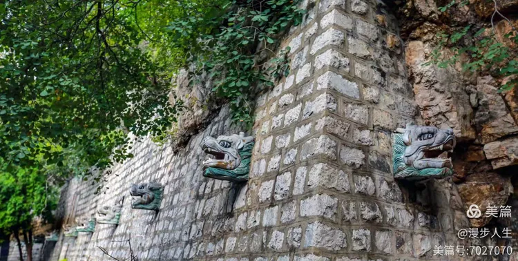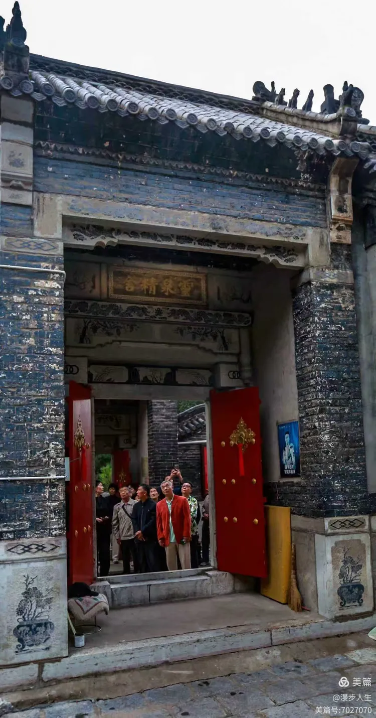 我们循着院落次第游览,细细观赏殿宇与奇景。在观音庙院落仔细辨认蒲松龄撰写的碑文,俯身察看“井里井”上井口,望着那500年树龄的古柏树,它沧桑而挺拔,默然而立,似是在见证日升日落,云舒云卷,好不惬意。随后又沿着小径下行,来到钟鼓楼下方,拨开齐人高的荒草,拂去蛛丝,踏着荒径找寻“井里井”的下井口,终于见到了古井全貌,昔日路人与村民下井取水,僧人上井饮水,“同一口井,不同烟火”的巧思,让人叹服。这份“踏破荒草寻古泉”的新鲜与欣喜,自然要定格在镜头里!
