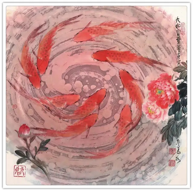 鱼,在中国文化的长河中,始终承载着吉祥、丰饶与奋进的寓意。庄子濠梁观鱼,"知鱼之乐"的哲思穿越千年;《诗经》"鱼潜在渊",寄托着对美好生活的向往。数十年来,我潜心钻研画鱼之道,深知每一笔勾勒、每一抹渲染,都要传递出生命的灵动与时代的韵律。而今,当我铺展宣纸,研磨浓墨,那跃然纸上的已不仅是鱼儿,更是这个伟大时代的生动缩影。