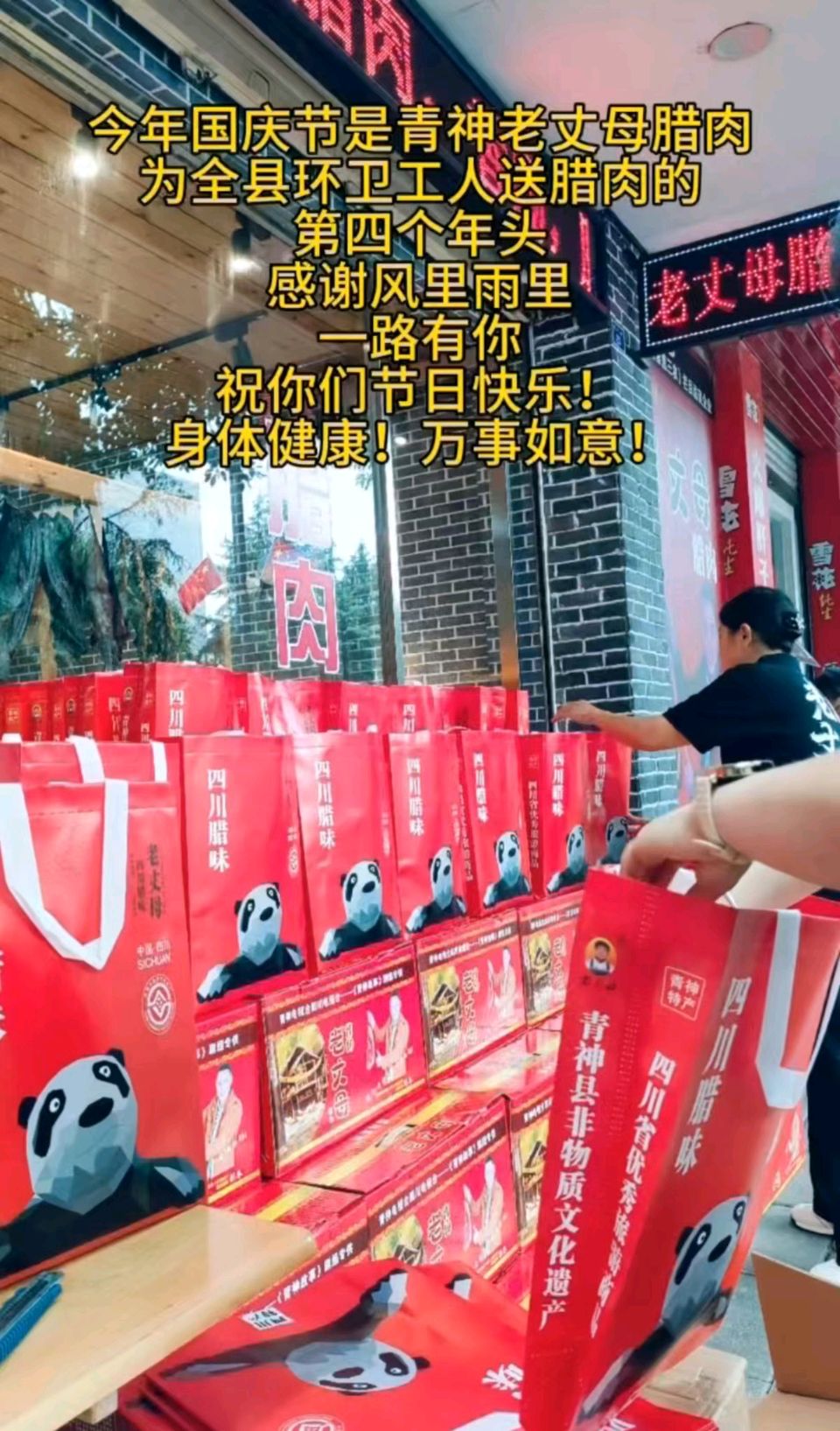 “青神老丈母腊肉”,这个带着浓浓家常味的名字,选择在这样一个举国同庆的日子里,送上最“接地气”的祝福。这并非一次简单的商业馈赠,而是一场持续了整整四年的温暖约定。每年国庆当天,240份沉甸甸的腊肉香肠礼包,都会被一一送到环卫工人的手中。