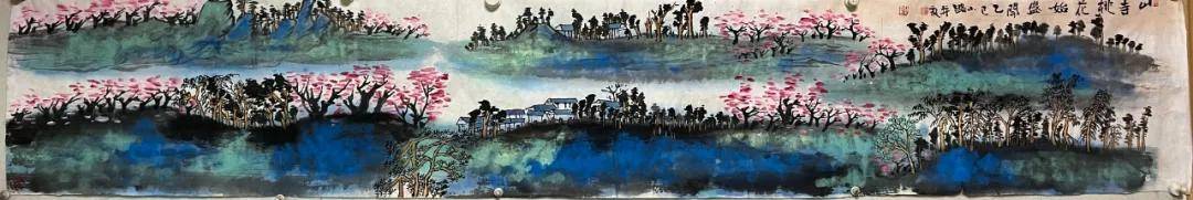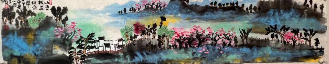 《山寨春早》:将自然山水与人文景观结合,以工笔刻画林木屋舍,写意挥洒山峦云气,传递出对"绿水青山"时代精神的歌颂。
