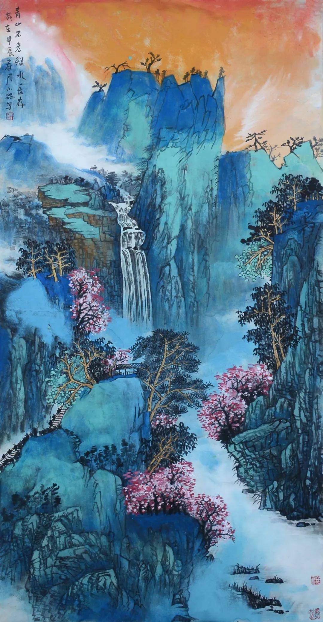 张小路的山水艺术,可视为一场"传统的创造性转化"。她以青绿为媒介,将宋人的严整与元人的逸趣、东方的意境与西方的色彩熔铸一炉,构建出既植根民族美学又具国际视野的视觉篇章。其探索印证了"青绿千载,山河无限"的永恒魅力,也为中国画的当代发展提供了有价值的路径。