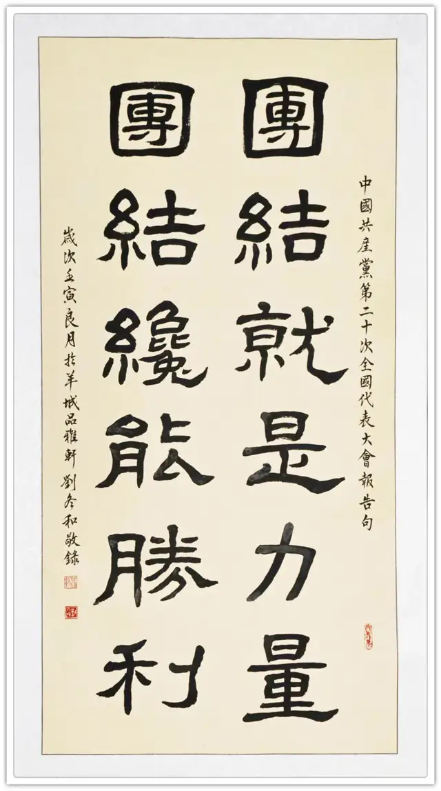 华夏翰墨文化网刊文指出:刘冬和四十余载浸淫楷、篆、隶诸体,兼通行书与篆刻,这份沉潜深耕的艺术坚守,使其作品自带厚重底蕴。其尤擅的汉隶与篆书,更是将传统书艺的精妙展现得淋漓尽致。