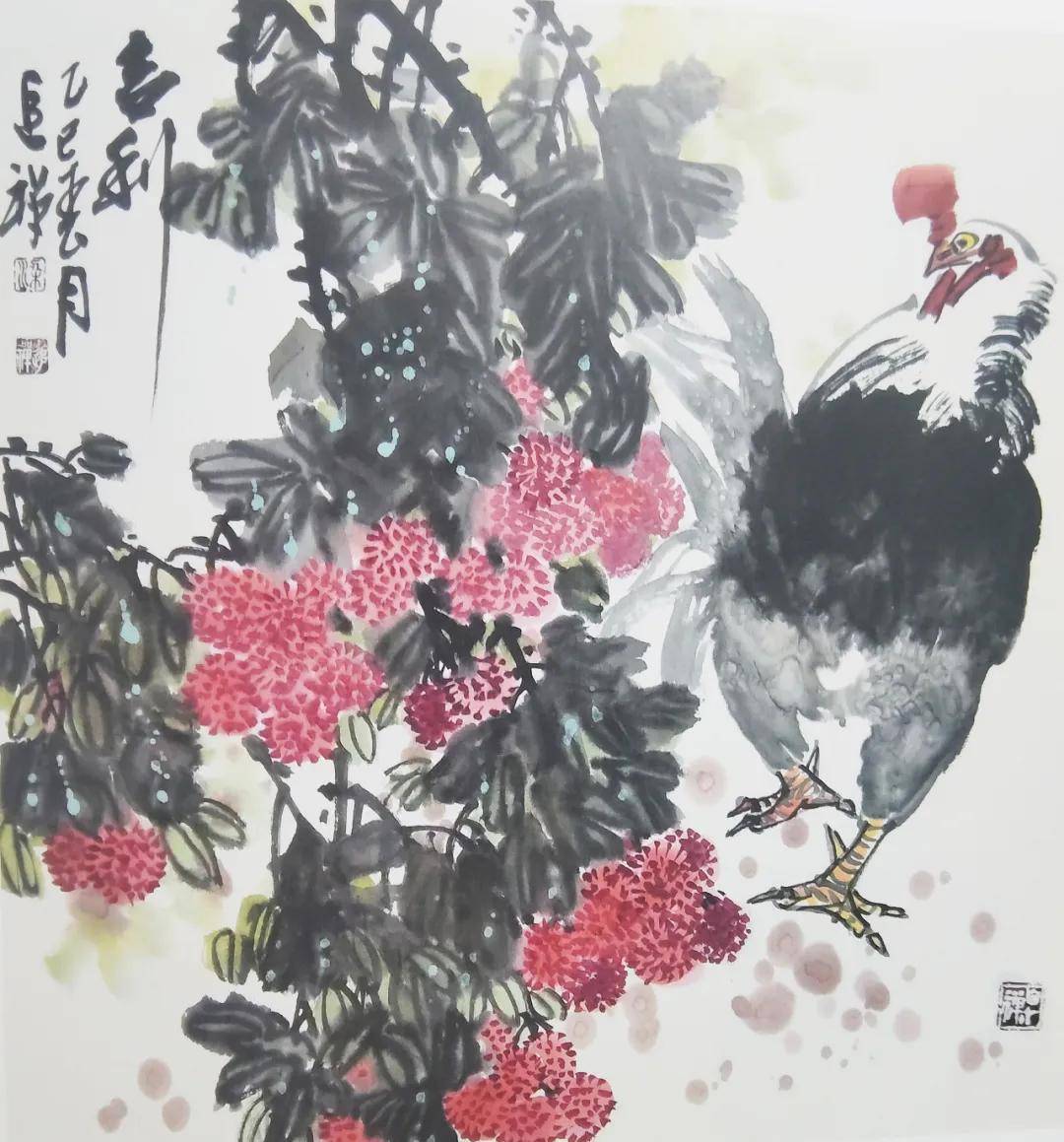 梁建甫,字箫剑,号沐剑、艺名追禅、五柳一怪等,河南省美术家协会会员,曾进修于清华大学美术学院美术理论研究与书画创作高级研修班,深厚的学术积淀与创作功底在其作品中尽显无遗。其花鸟画作以色彩亮丽、写实性强著称,笔墨线条粗中见细,浓墨里藏清新,无论是傲雪绽放的梅花,还是引吭高歌的雄鸡,皆浸润着对自然的感悟与对美好生活的追求。此次收录的作品中,既有延续宋代院体画细腻勾勒的传统技法,如对花木纹理的精妙皴擦,又融入写意笔法的灵动洒脱,部分作品更以局部特写的创新构图突破传统范式,在虚实对比中营造悠远意境。