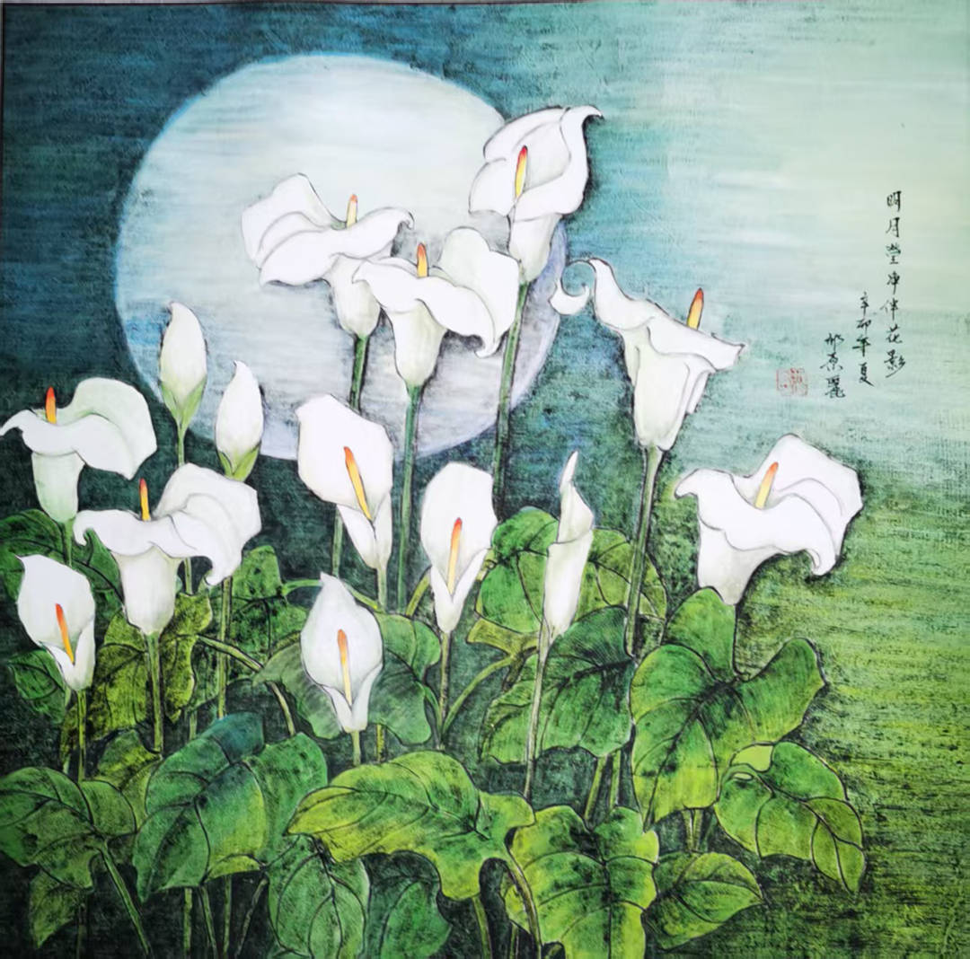 “月移玉兰映光辉”等三幅作品参加《当代艺术名家网络展》荣获银奖。
