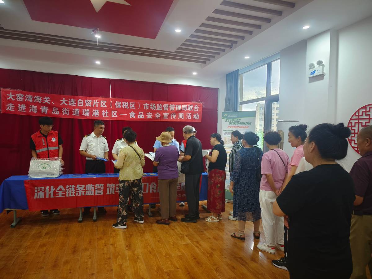 为提升居民食品安全意识,强化食品安全全链条监管,近日,海青岛街道瑞港社区新时代文明实践站联合大窑湾海关、保税区市场监督管理局共同开展“食品安全月”主题宣传活动,通过“宣教+服务”双举措,构建食品安全防护网。