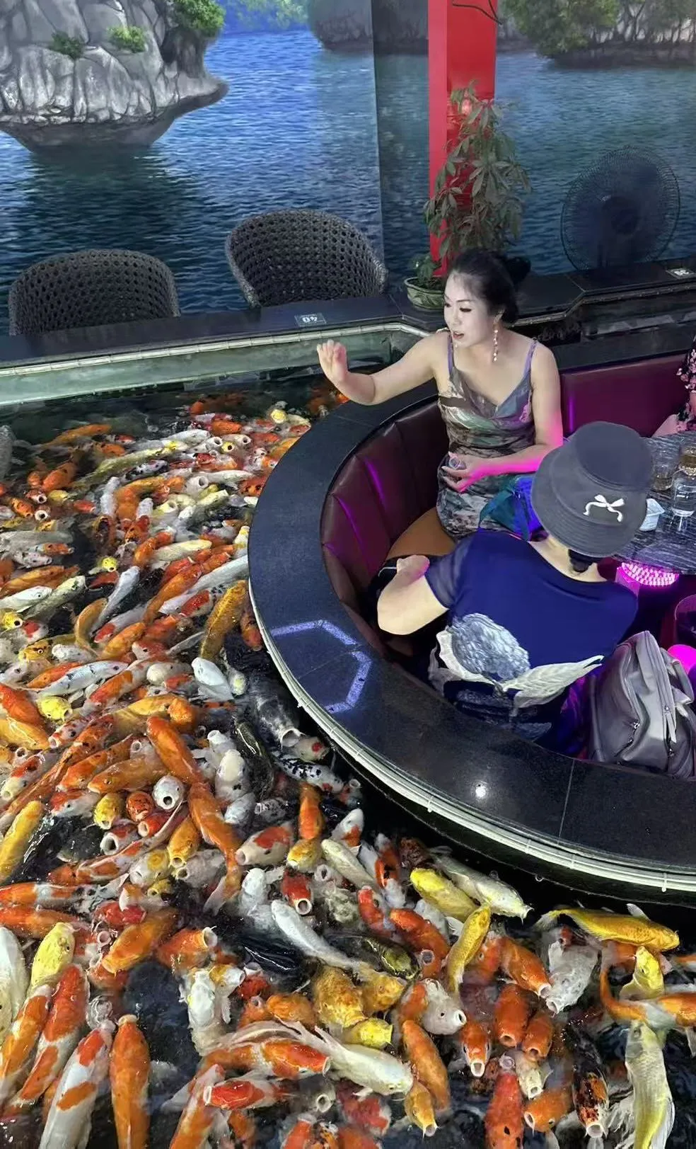 崔淼淼女士在越南御赐咖啡厅观赏锦鱼