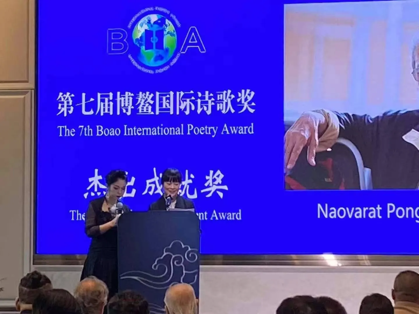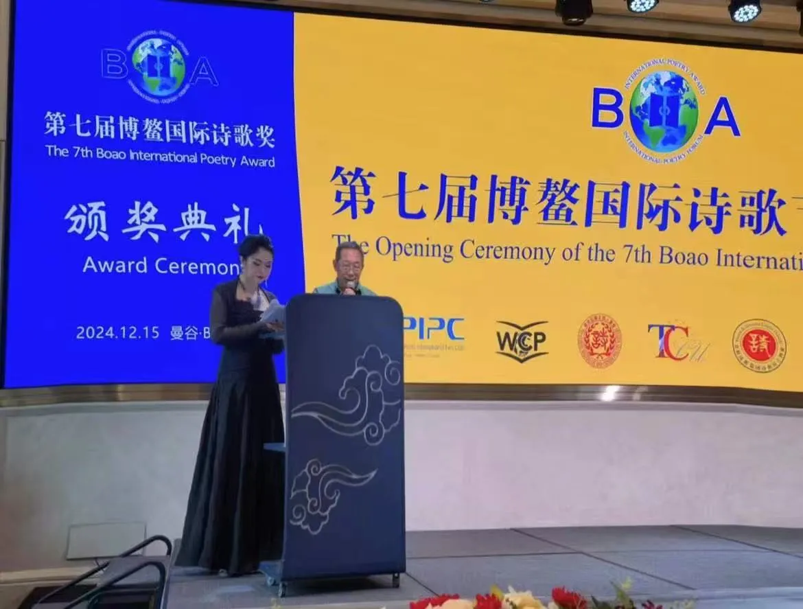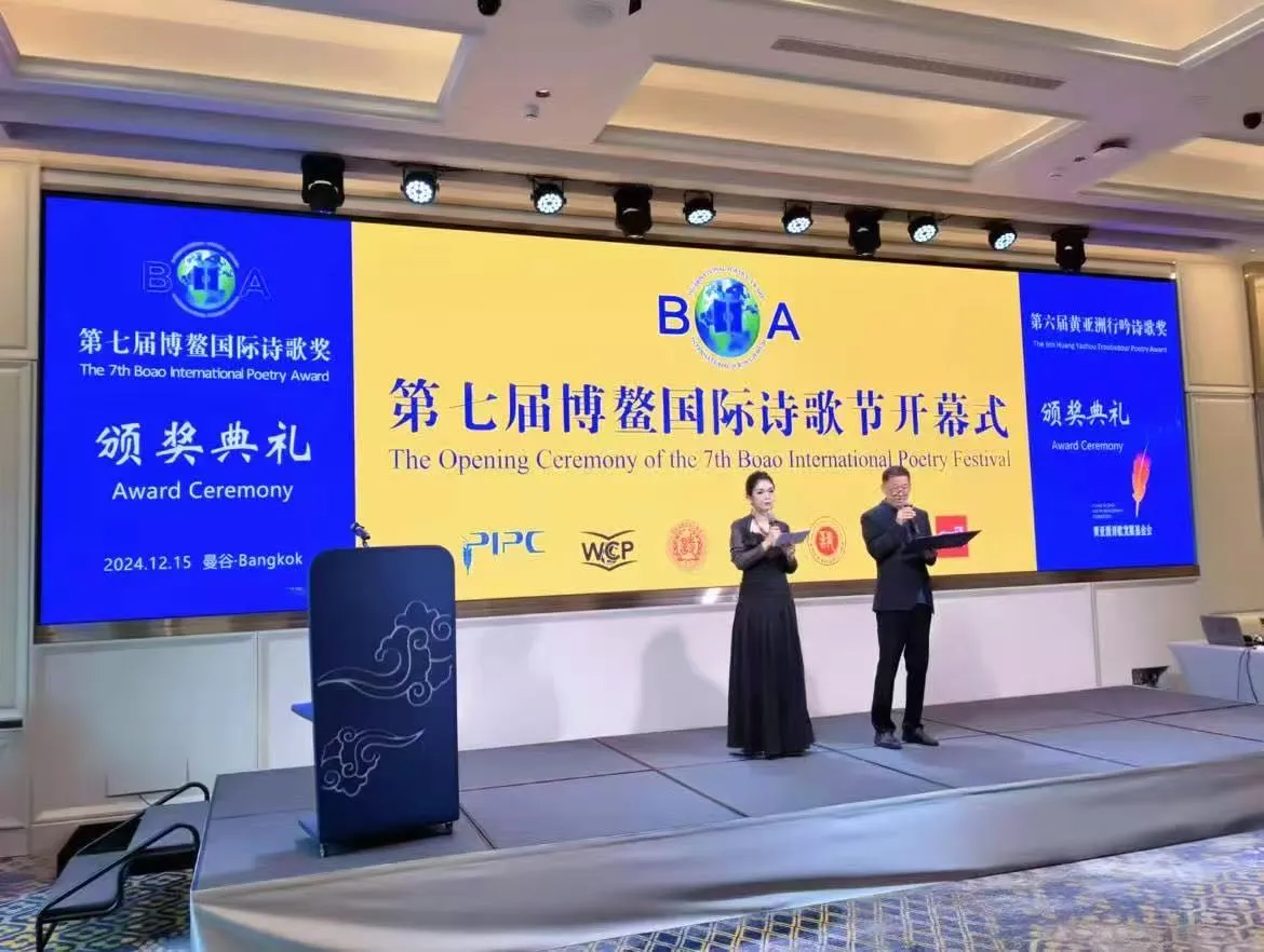 2024年崔淼淼女士在泰国曼谷用英文主持第七届博鳌国际诗歌节并进行同声传译