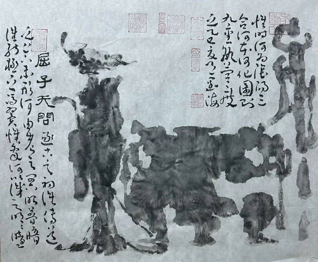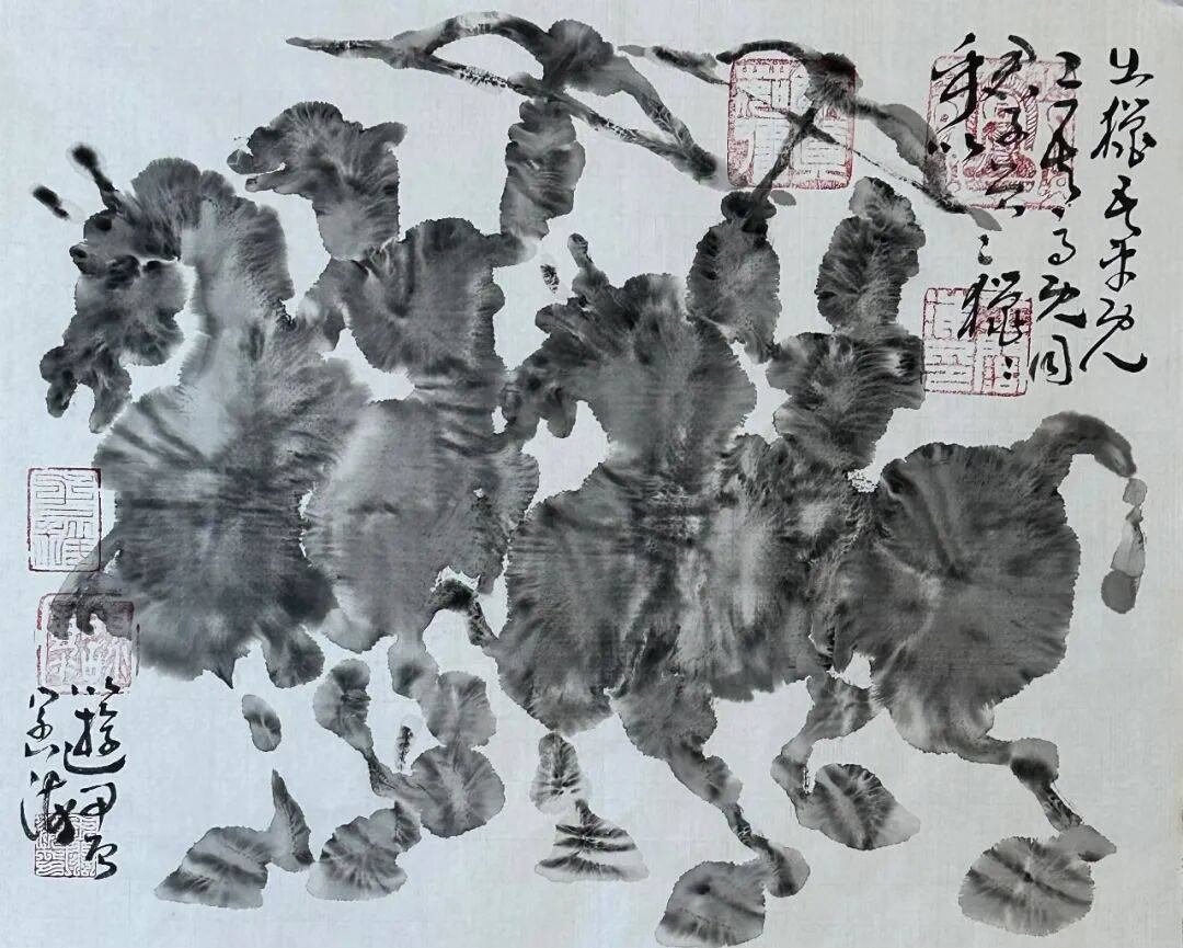 王阔海深谙汉画传统画法之精髓,他深知任何绘画的独创都必须建立在传统技法的基础之上。因此,他的新汉画作品在掌握传统技法的基础上进行了大胆的革新,既保留了传统的韵味,又融入了新的元素,所创“冲墨、冲线、冲色”三冲合一之水墨大法,开当代水墨“相冲、相化、相破、相撞、相渗、相润”玄之又玄之先河。这种对传统与创新的巧妙结合,使得他的作品既具有深厚的文化底蕴,又充满了时代气息。