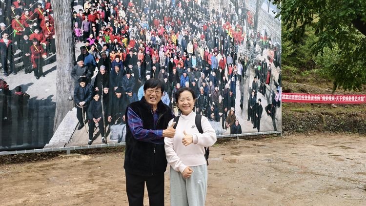 拍照爹娘彰大爱。爹娘儿子皆是星。