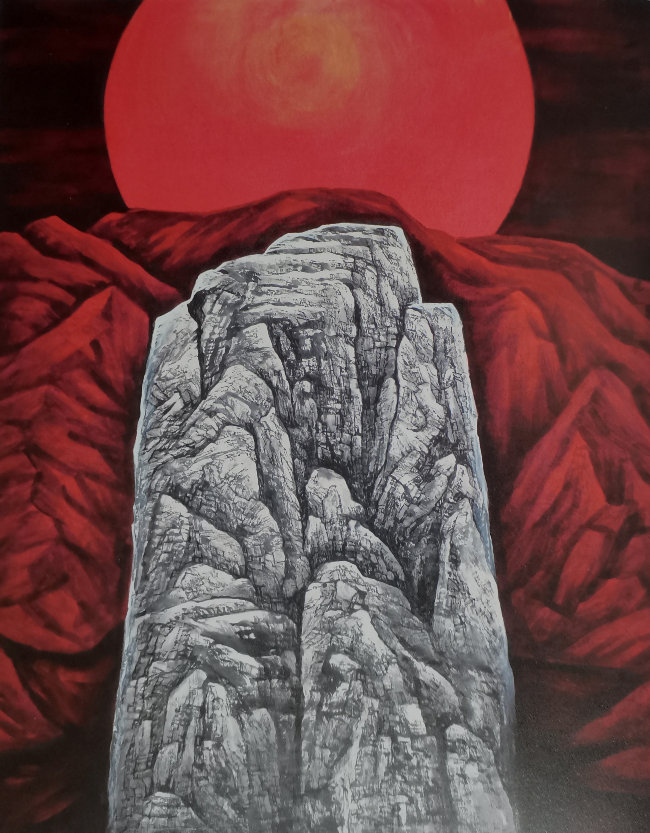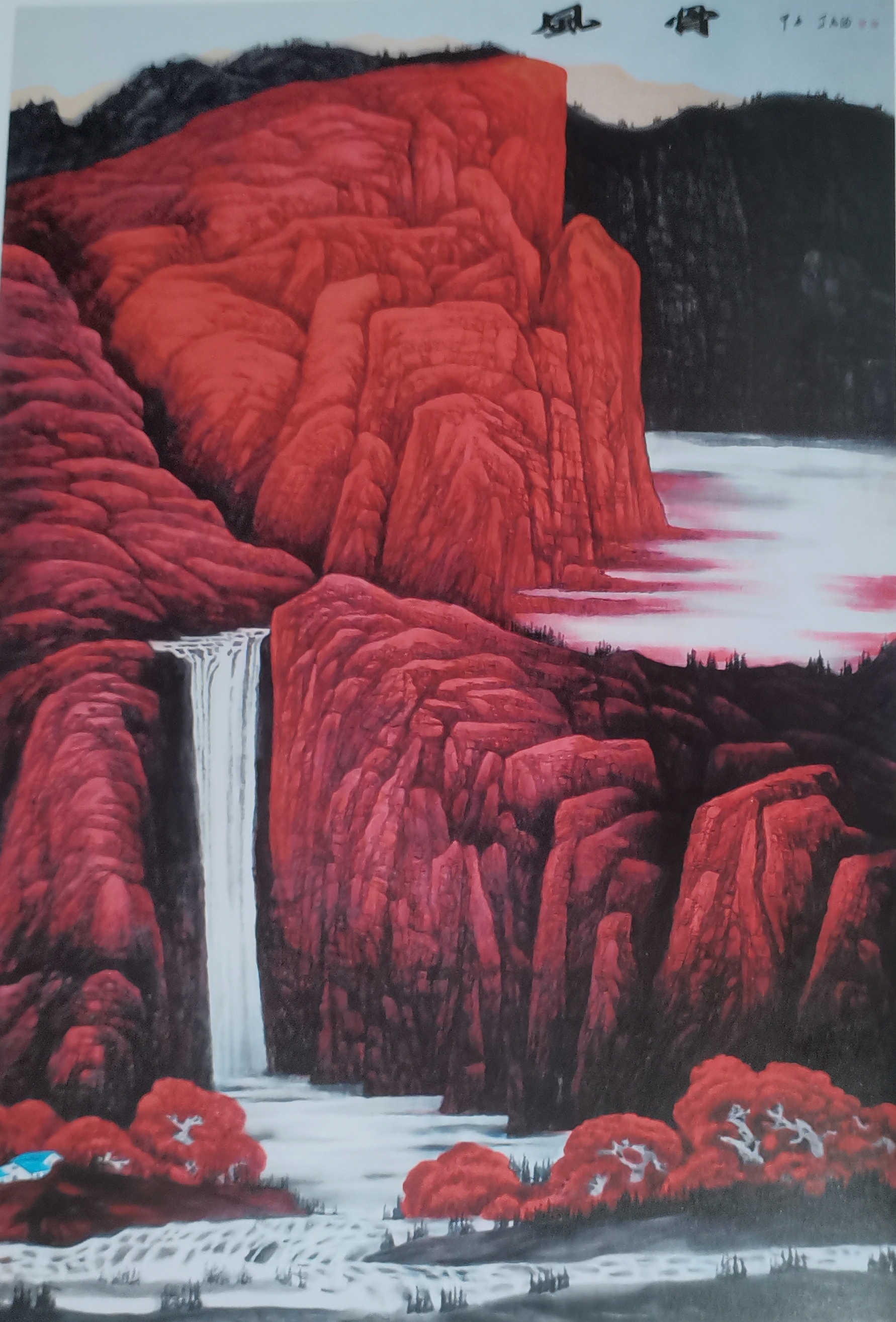 王天国 : 我关注你的国画作品快有十年了。特别是在山水画创作上,你将线条的舞动与朱砂红结合的天衣无缝,逍遥法外,独居画壇,可谓一霸,将国学文化与山水精神意蕴结合的总是那么深厚饱满,洋洋洒洒,不时唤起读者一阵阵的深思与共鸣。
